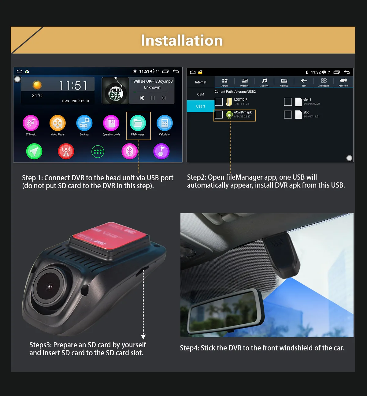 Видеорегистратор JOYING автомобильный с USB-портом и функцией записи голоса