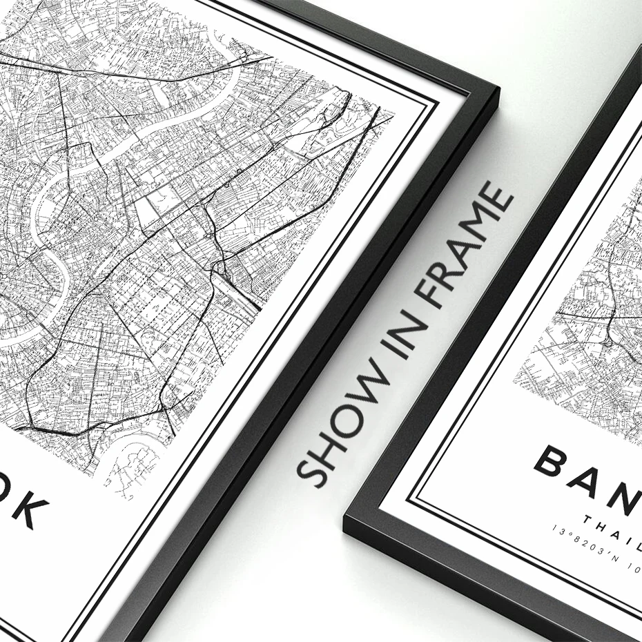 SURE LIFE Современная черная и белая городская карта Таиланда, дорожная холщовая картина, печатный плакат, настенные художественные картины для домашнего декора