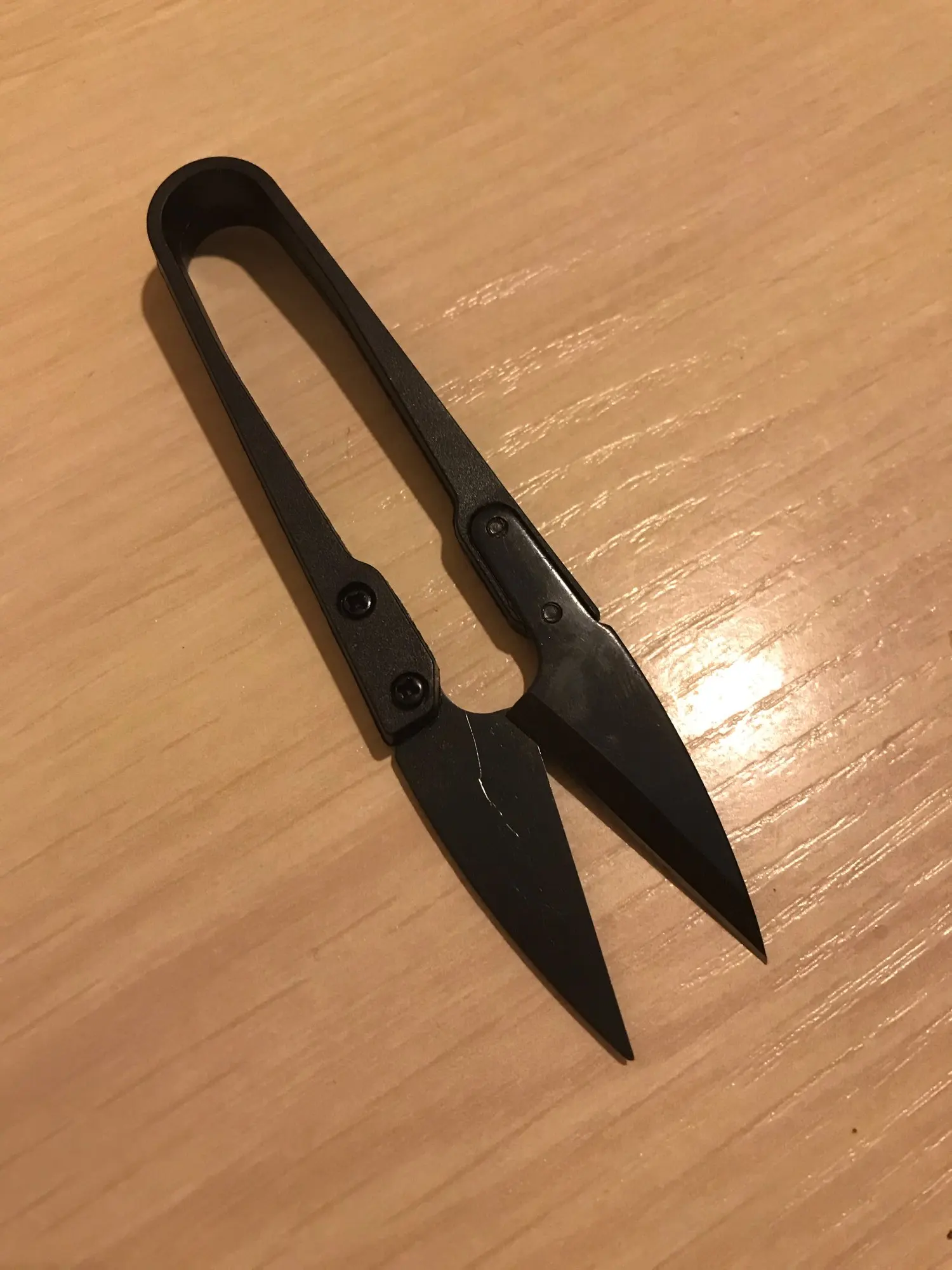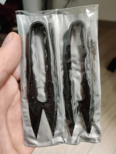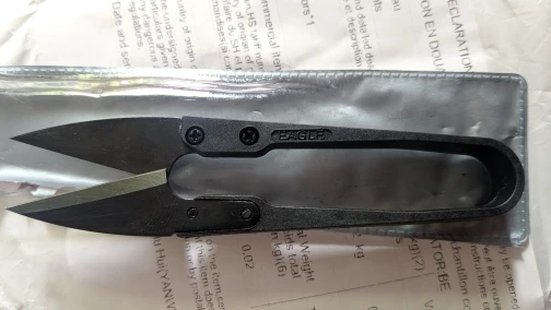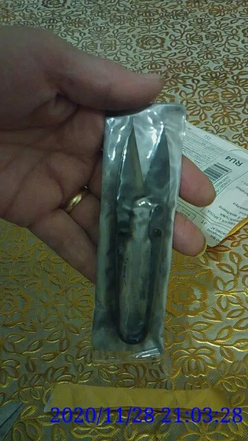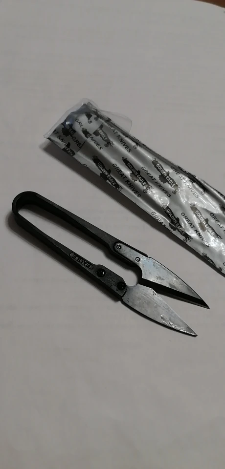 Отличный нитеобрезатель, доставка до Харькова носовой почтой 24 дня. Нитки режет отлично, срез получается ровный, ткань жует, бумагу только тонкую резать может. Думала будет больше размером, u-образная рукоятка не металлическая, а из матового, шершавенького пластика, в кубках удобно, не скользит