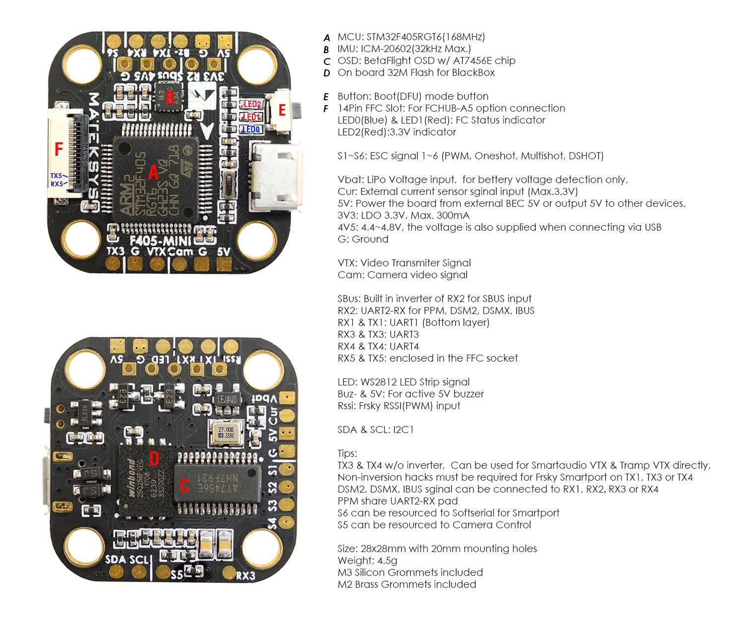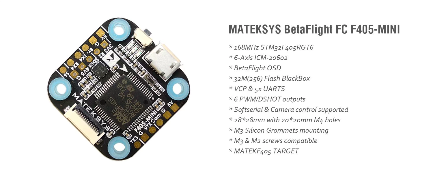 Мини-Контроллер полета Matek Systems F4 F405, Встроенный OSD 32K Gyro 32M Flash 20x20 мм