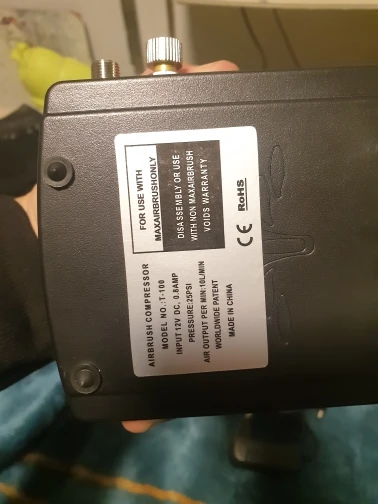 Приехал сдеком, отлично упакован, работает, качает 0,8 атмосферы по этикетке, для аэрографа хватает, но лучше 2е... :)