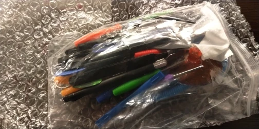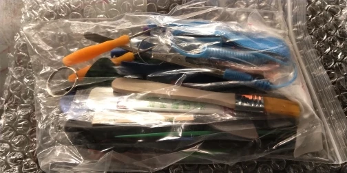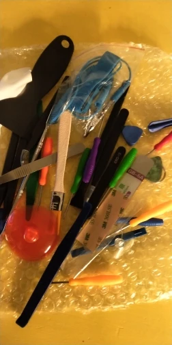 В целом хороший большой набор. Есть недостатки у некоторых пластмассовых инструментов. На концах загибы. Металлические скребки с загнутым краем, пришлось ровнять надфилем. Один пинцет плохо обработан, пришлось также дорабатывать надфилем.