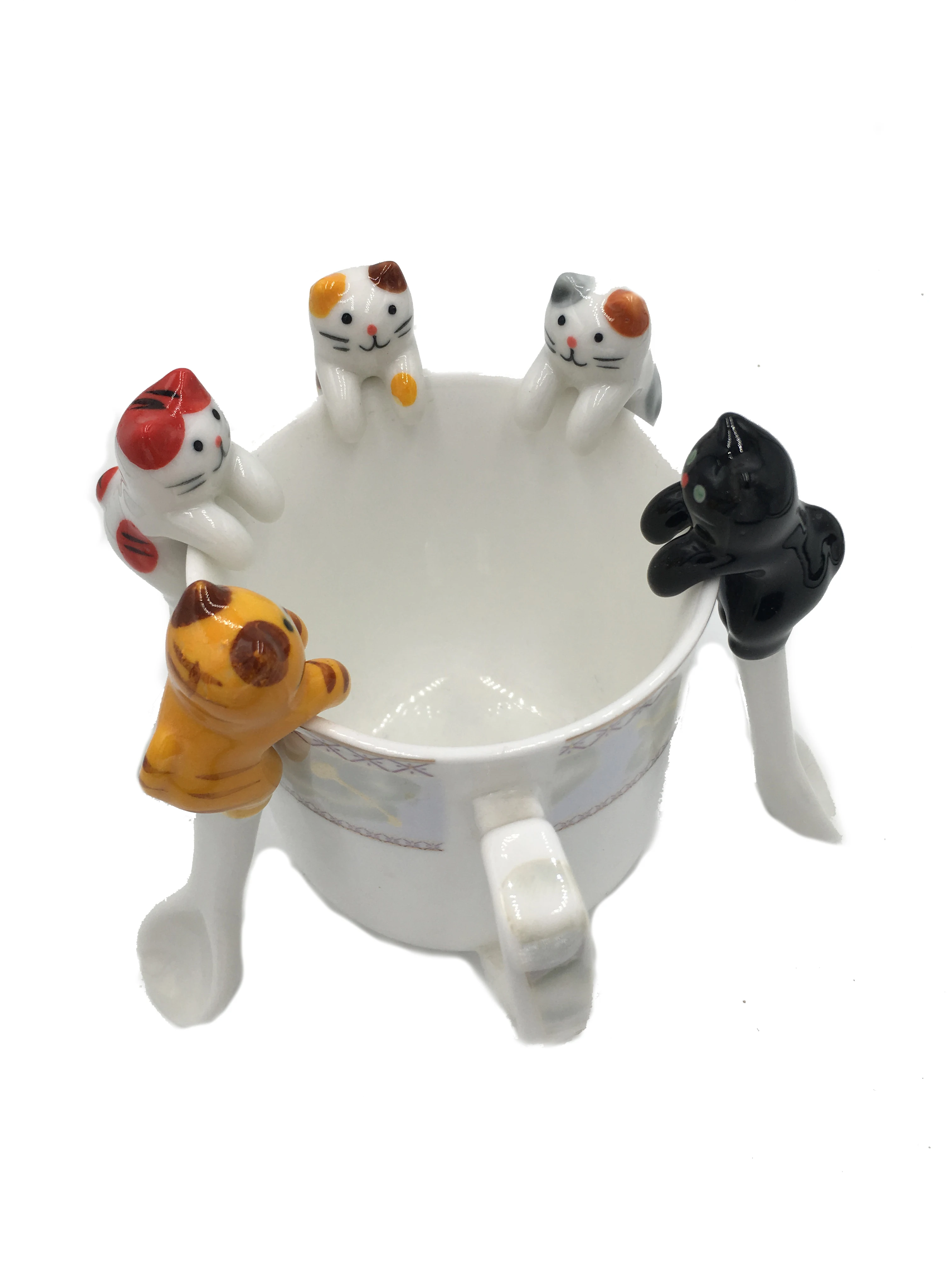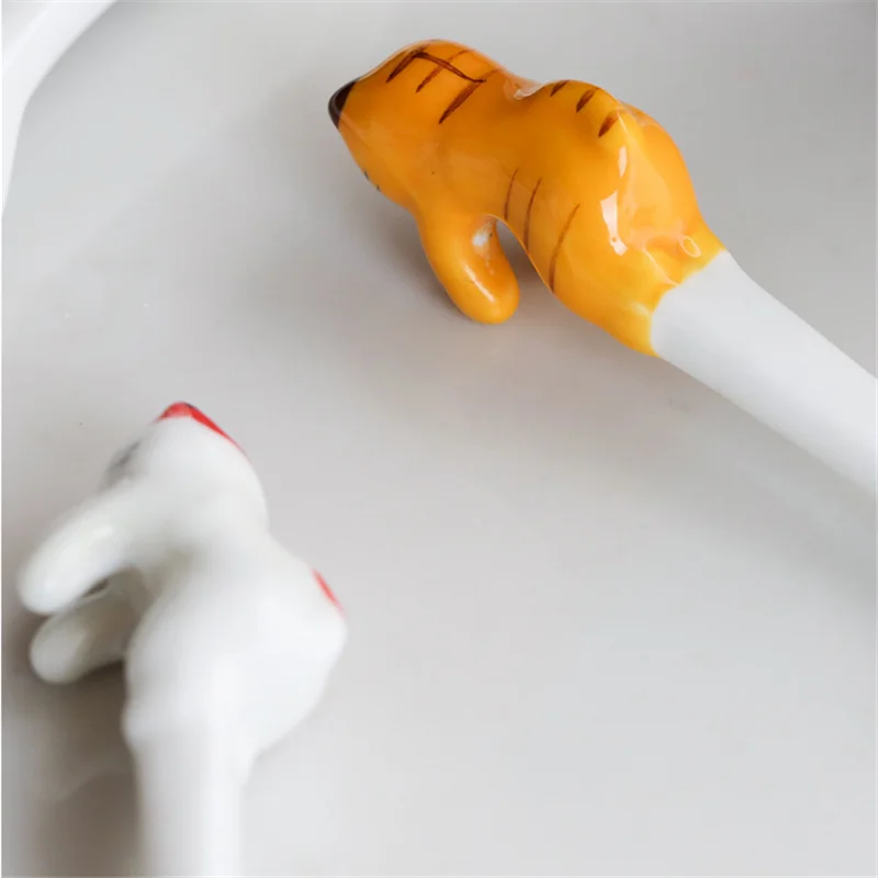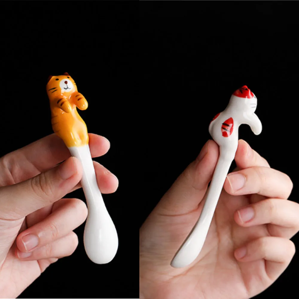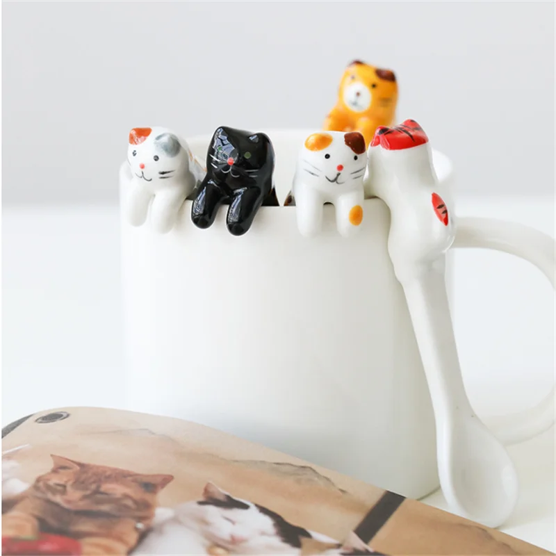 Милая керамическая ложка в виде кошки для кофе и чая, маленькая креативная ложка с короткой ручкой, инструменты для питья, кухонное приспособление, столовые приборы, посуда