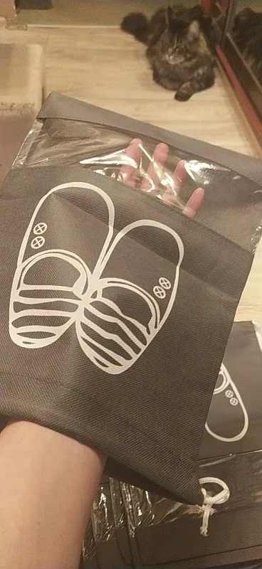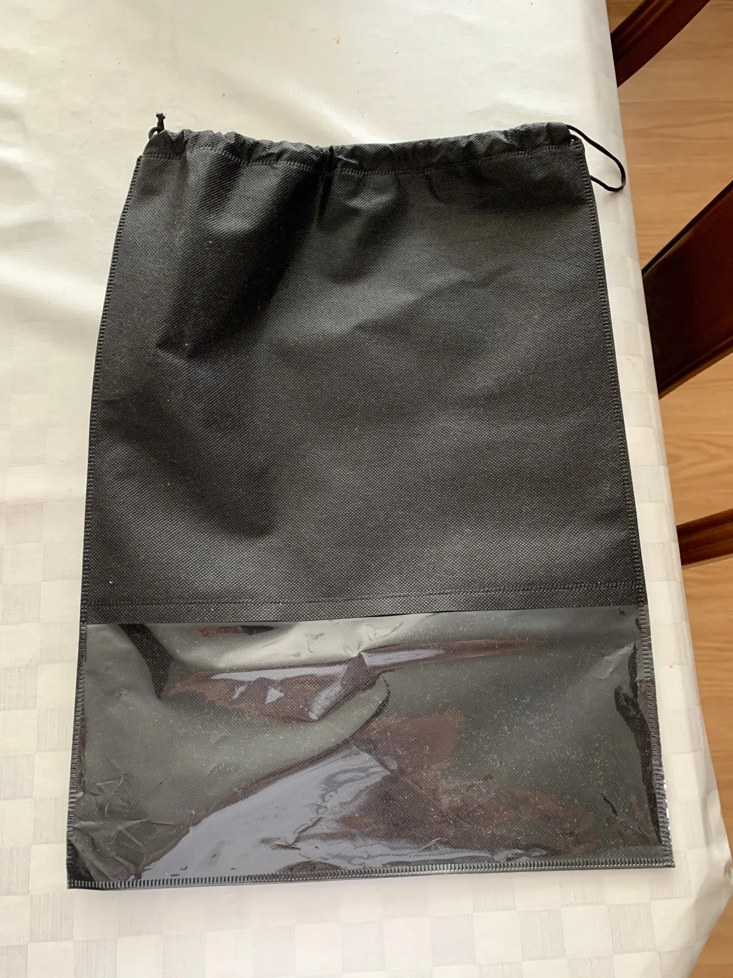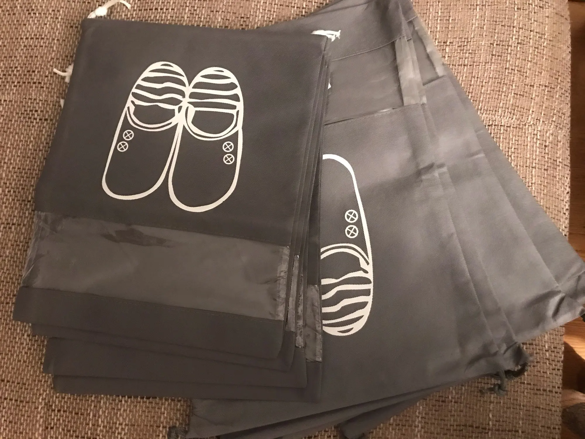 Отличный набор чехлов для хранения или транспортировки туфель и ботинок. Цвет — не черный, но очень тёмный синий, под джинс. Обувь 36 размера входит идеально, с запасом. Благодаря "окошку" удобно искать нужную пару. Доставка в Украину = 3 недели. Товар надёжно упакован. Описанию и фото соответствует. Рекомендую продавца!