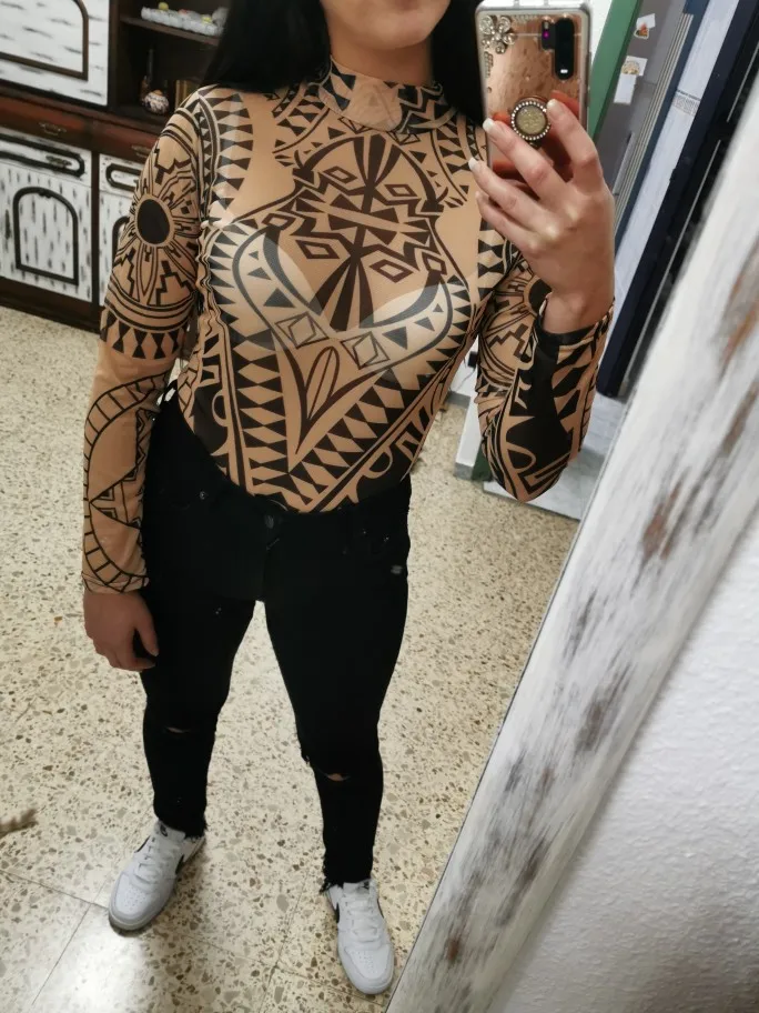 Комбинезон женский с длинным рукавом, Эластичный Трико, облегающие брюки с тотемным принтом