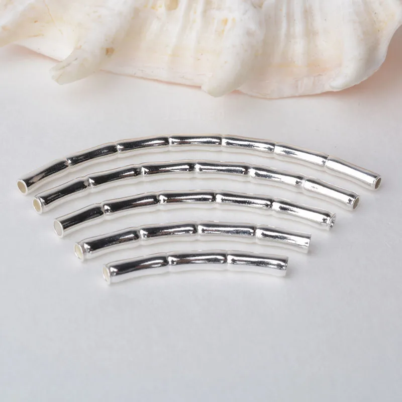 1 шт., 2 мм сплошной Стерлинговое Серебро 925 пробы изогнутые бамбуковые трубчатые бусины разъем для изготовления ожерелий и ювелирные браслеты и кулоны