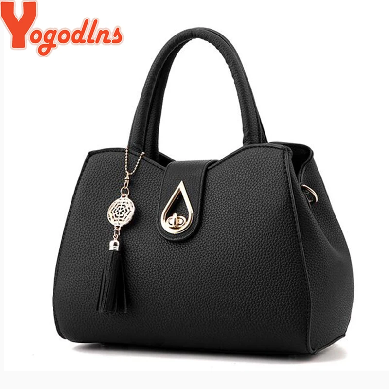 Вместительная кожаная женская сумка Yogodlns, простая сумка через плечо с кисточками, темпераментная сумочка