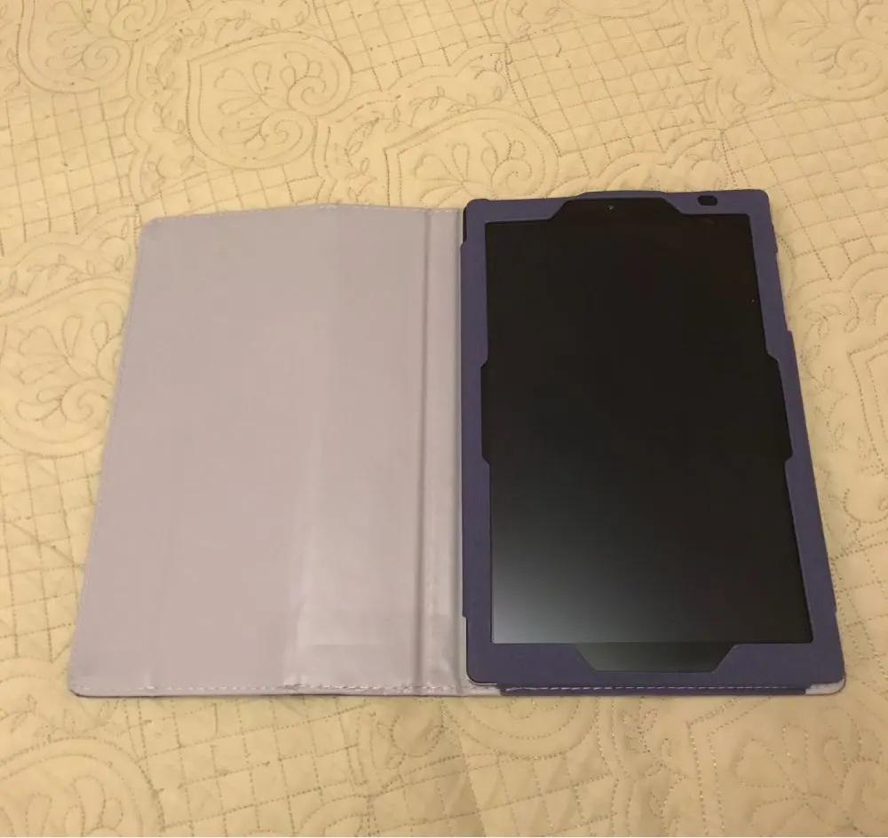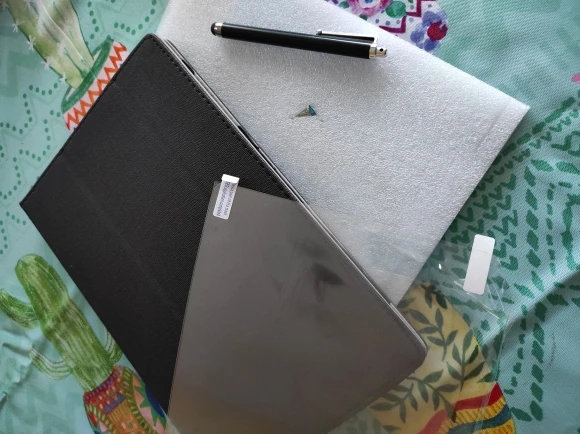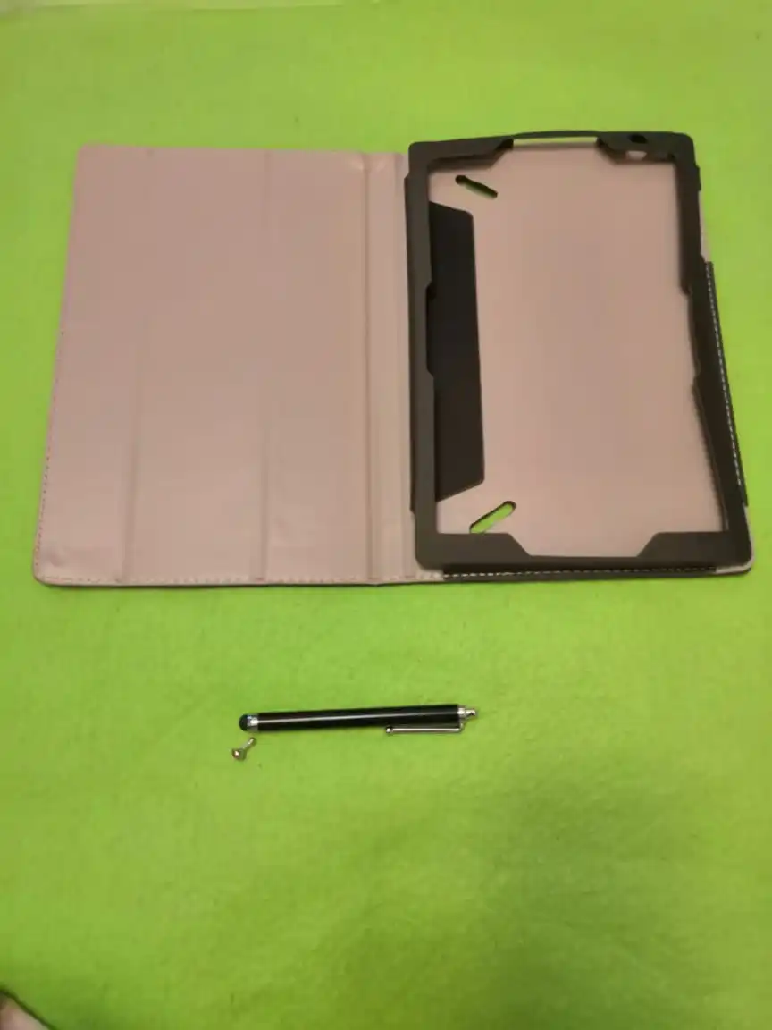 Хорошо подходит для планшета и может использоваться в качестве подставки для планшета обеспечивает пластиковую защитную пленку для экрана и сенсорную ручку, которая действительно хорошо работает. Отверстия для разъема, камеры и кнопок широкие, чтобы они не мешали в использовании. Я считаю, что это настоятельно рекомендуется для цены, которую вы имеете.