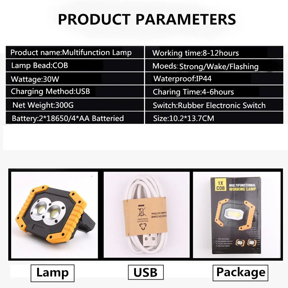 30 Вт Led COB портативный прожектор водонепроницаемый рабочий свет лампа перезаряжаемый светодиодный фонарик для охоты кемпинга открытый свет 1 шт. icon star icon star icon star icon star icon star