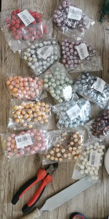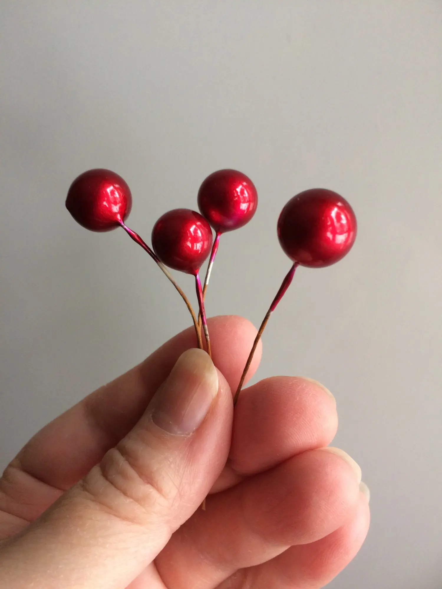 Цветные жемчужные тычинки, искусственные цветы, маленькие ягоды, вишня для самостоятельного изготовления свадебного Рождественского торта, жемчужина декоративный венок, 50 шт.