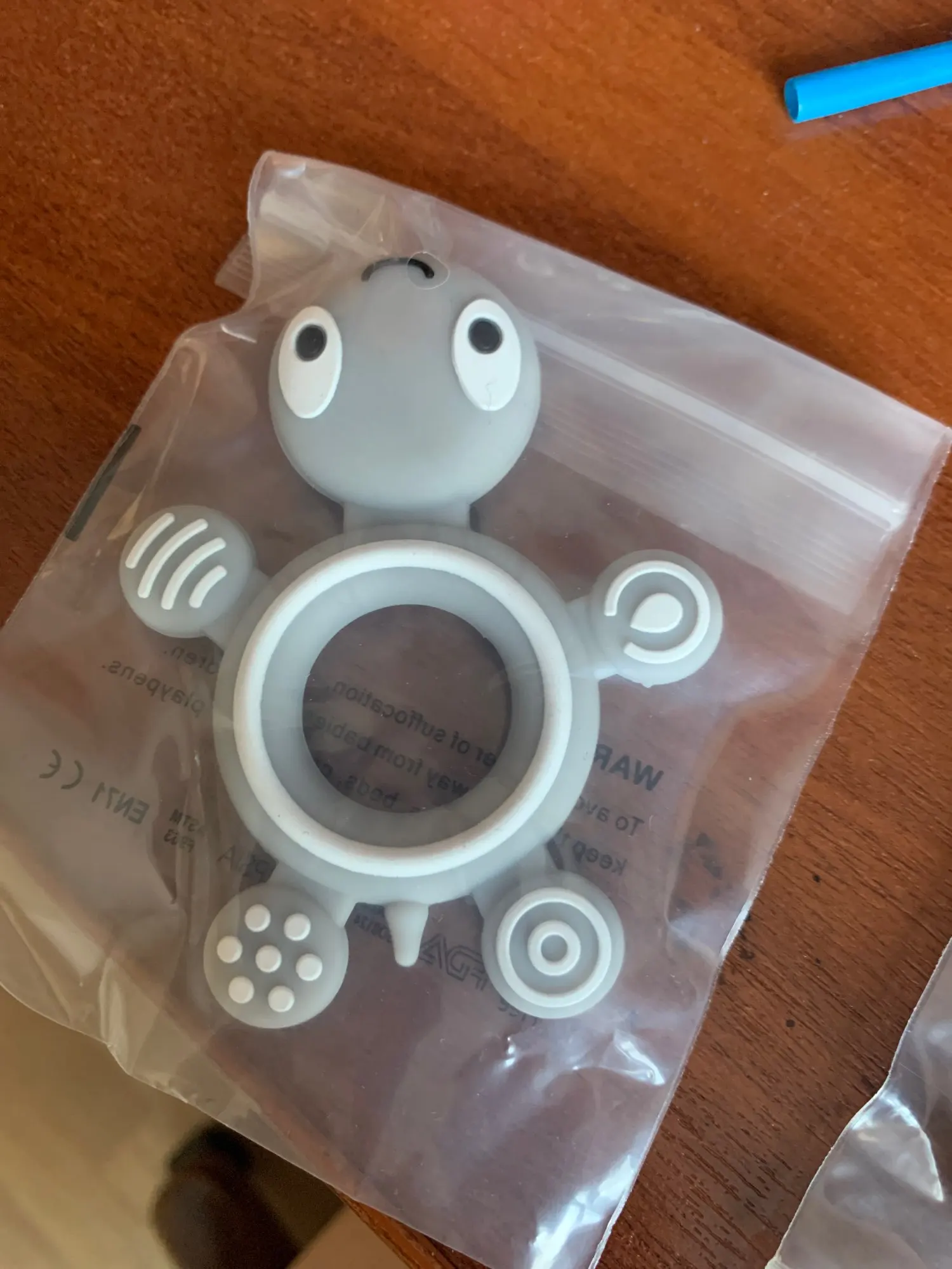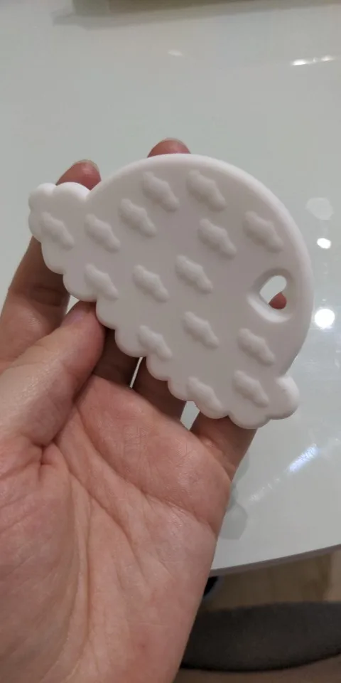 прорезыватель классный,дочке 3 месяца в ручке держит,удобен для малышей.Еогда только распечатала,был запах,выветрился быстро.В Кировскую область доставка месяц