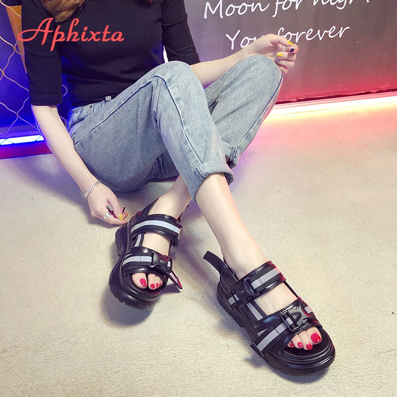 Женские босоножки на танкетке Aphixta, кожаные парусиновые туфли на высоком каблуке 8 см, на платформе, лето сандалии Женщины Клин