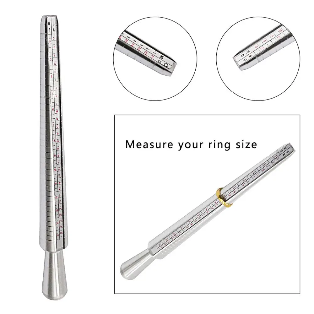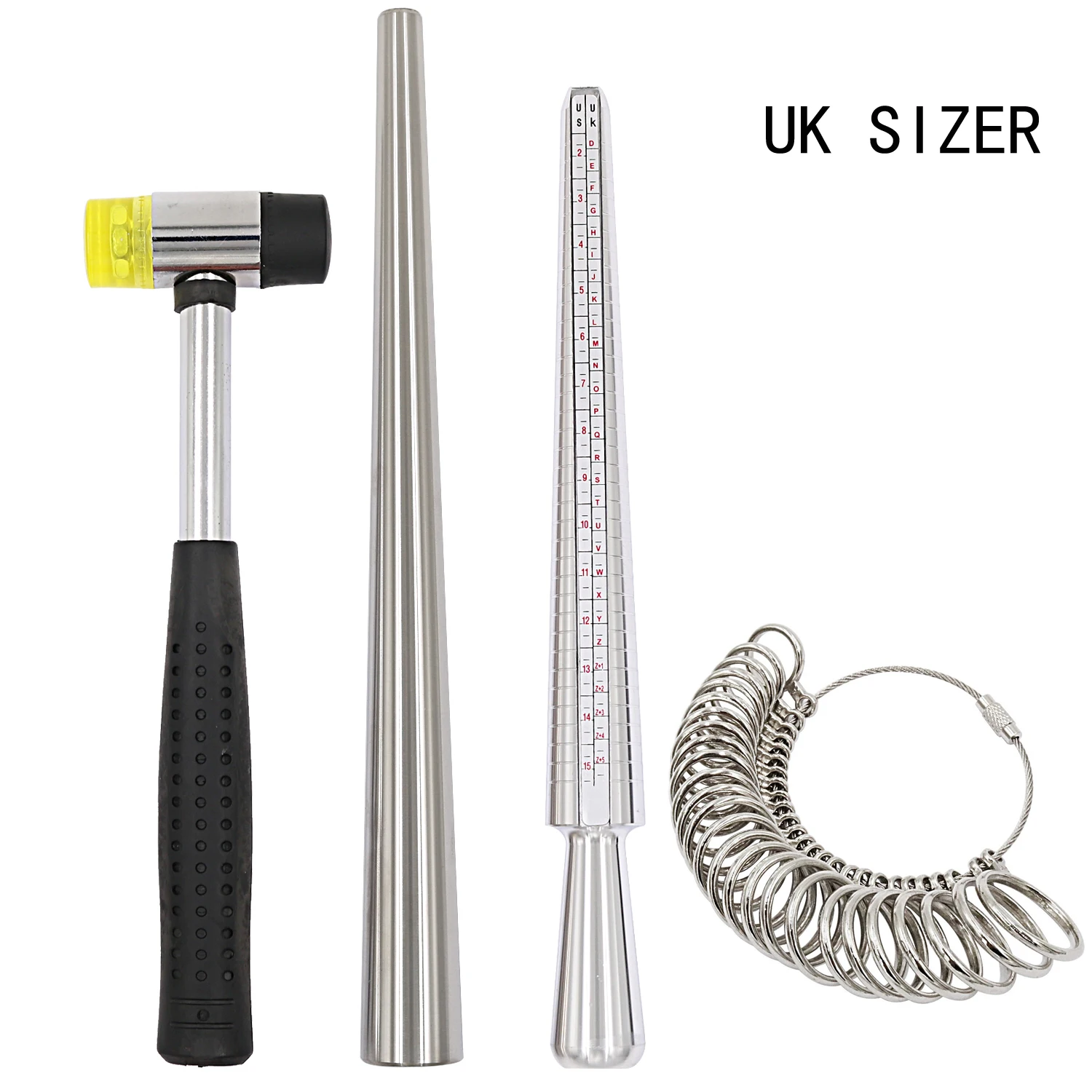 Инструмент для измерения размера кольца, 4 шт., с металлической оправкой, с измерительной палочкой и кольцом, измеритель размера и резиновый ювелирный молоток