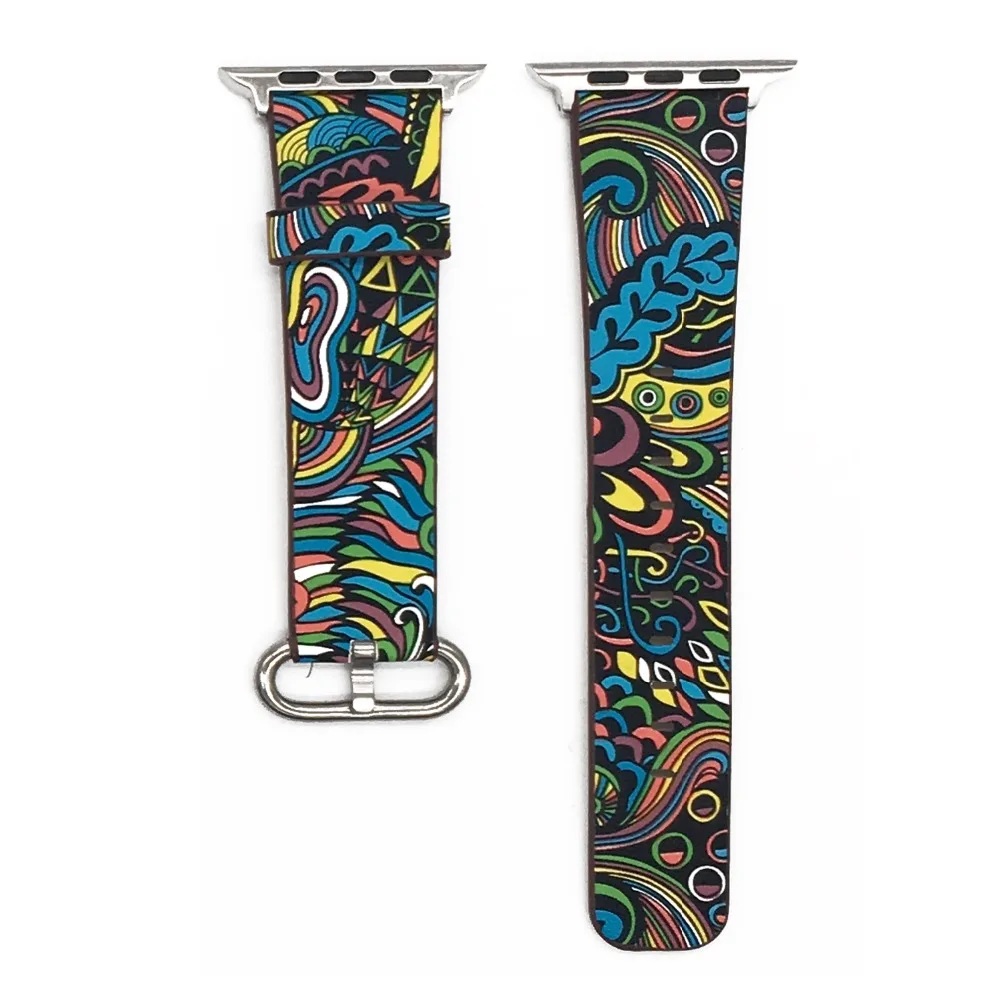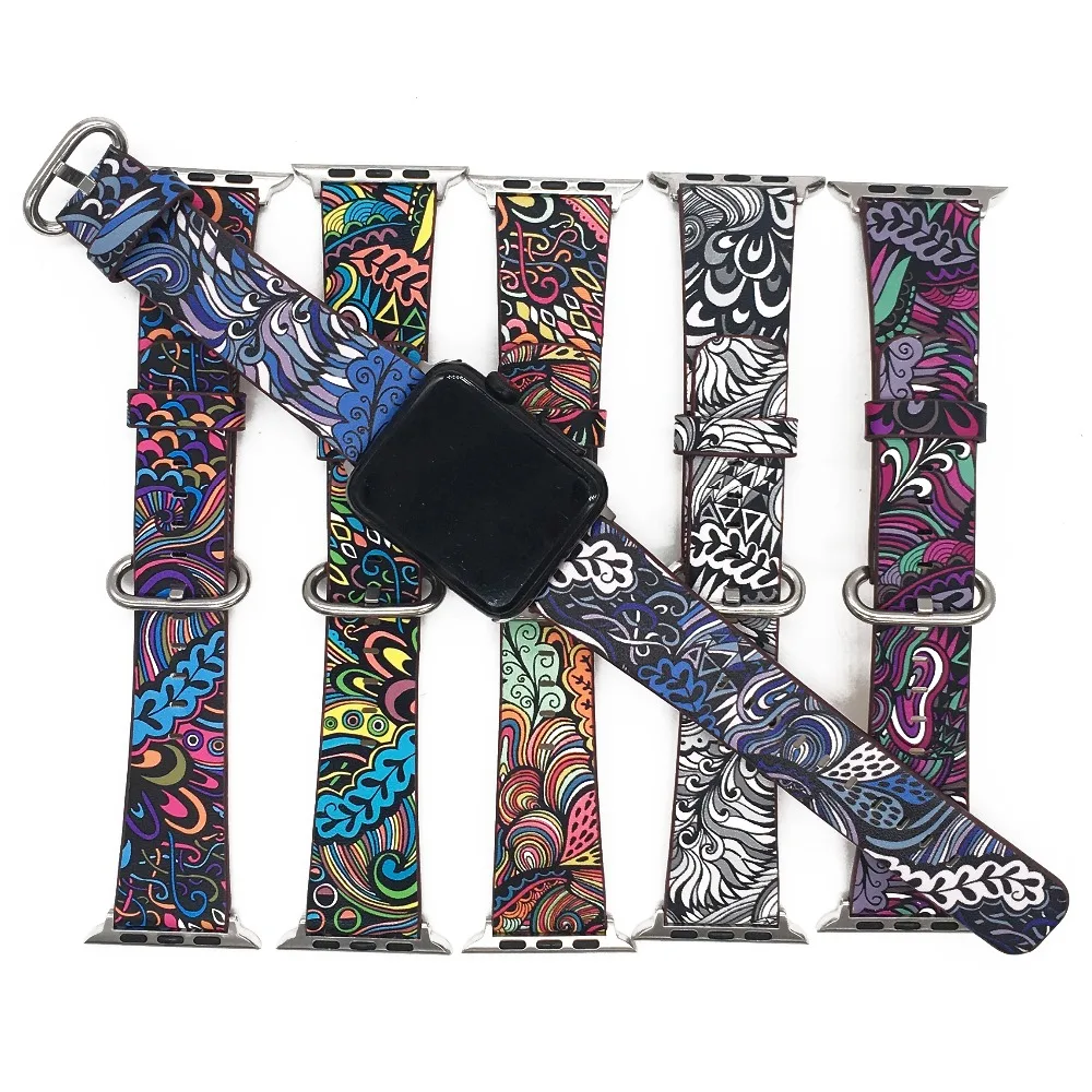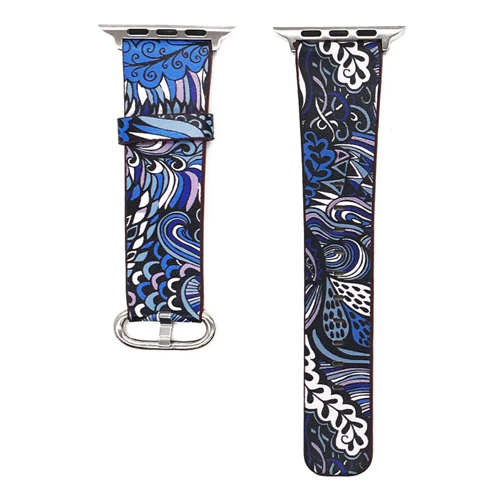 Ремешок из искусственной кожи для Apple Watch series 123 42 мм 38 мм, браслет с цветами для iwatch series 7 6 5 4 40 мм 44 мм