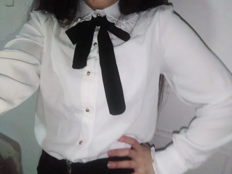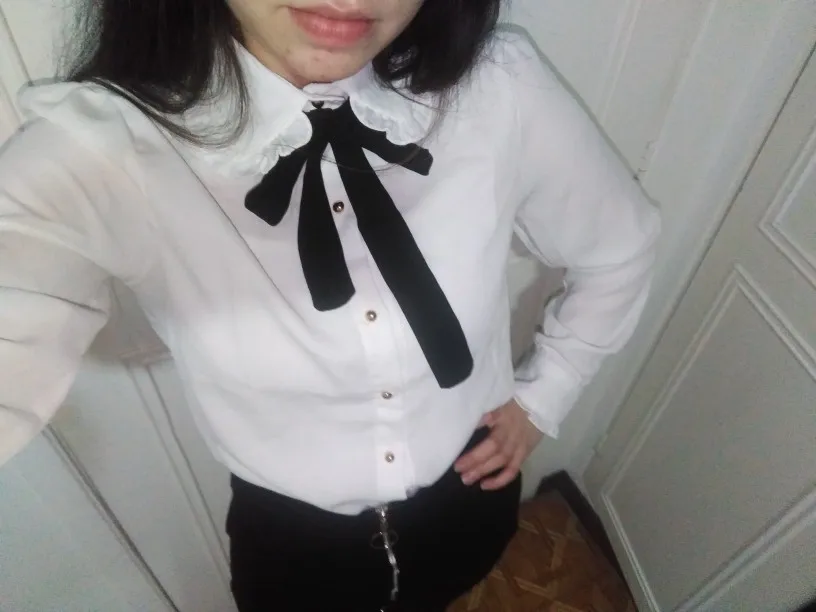 Красивая блузка, изготовленная из прозрачной ткани. На самом деле я получил 2 белых (Размер m и l) и 2 черных (одинаковых) я никогда не знаю, какой размер подойдет и все хорошее. Цвет ботинок не подходит, его золотой и маленький, но я могу поменять его сам, если он не подойдет. 5 звезд для быстрого выбора!