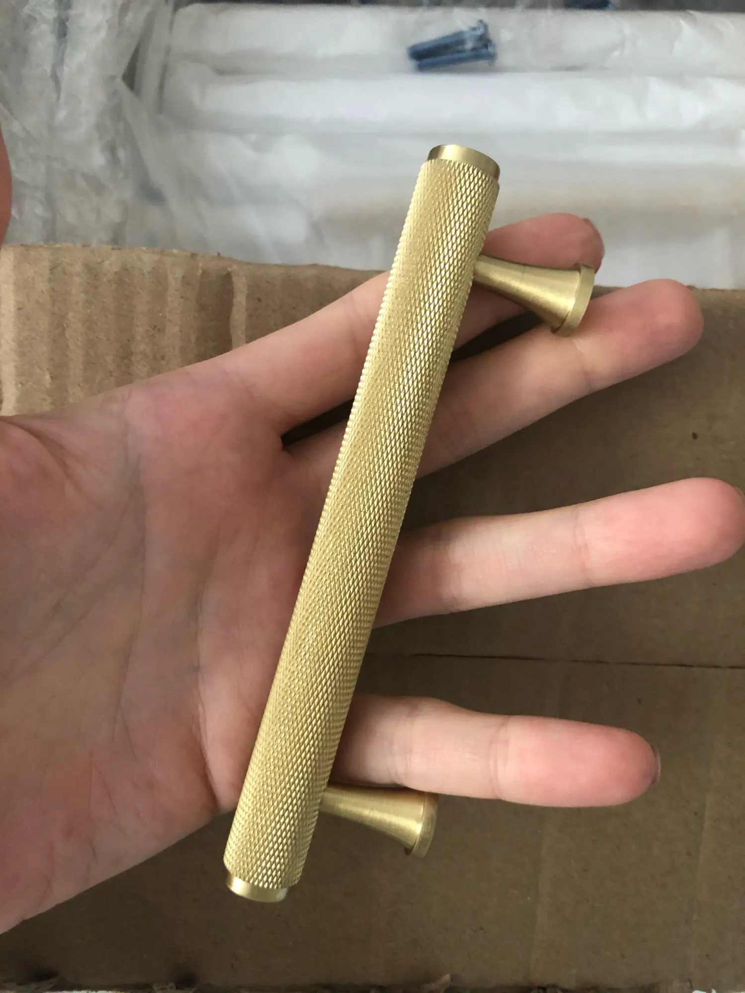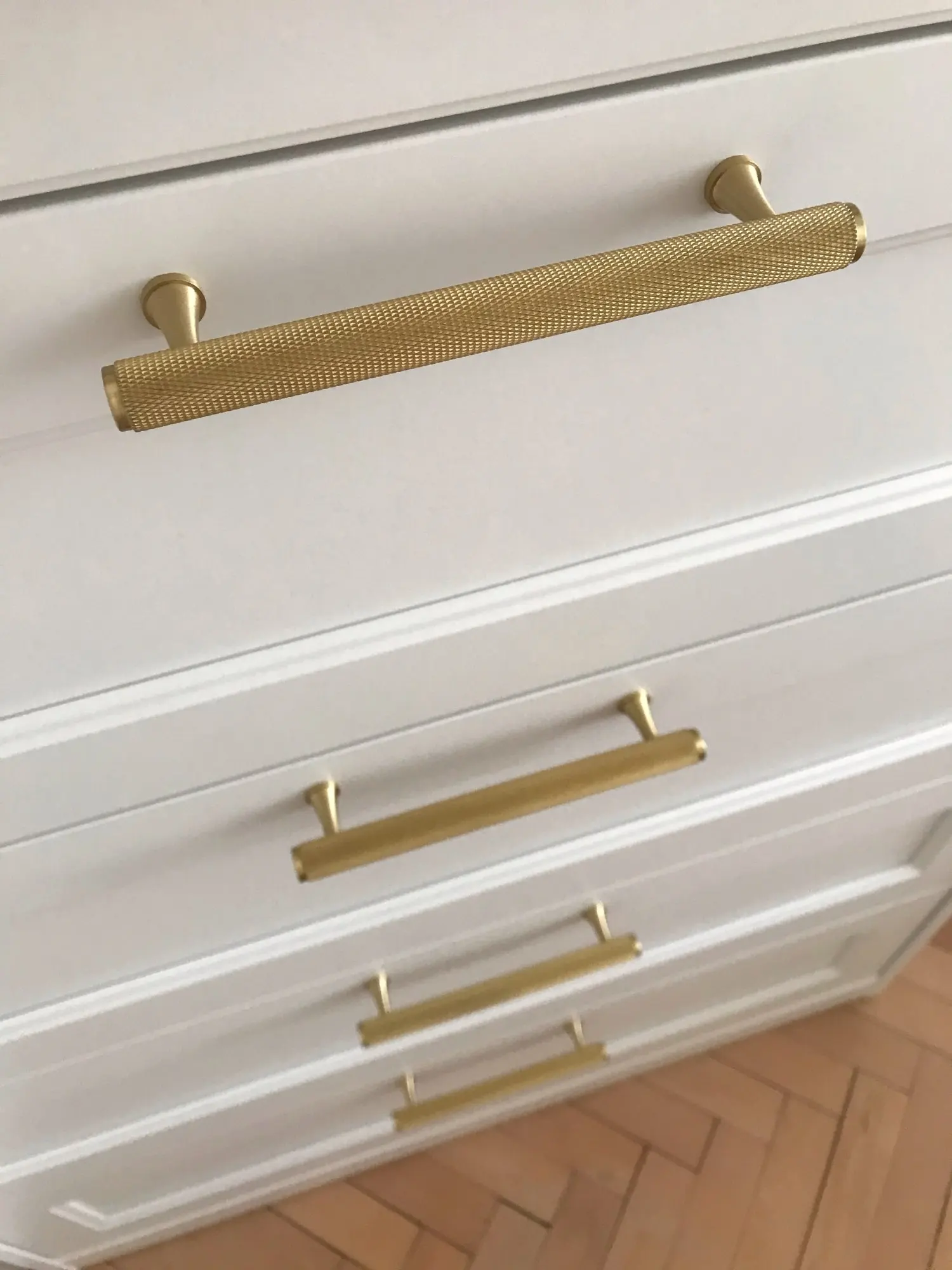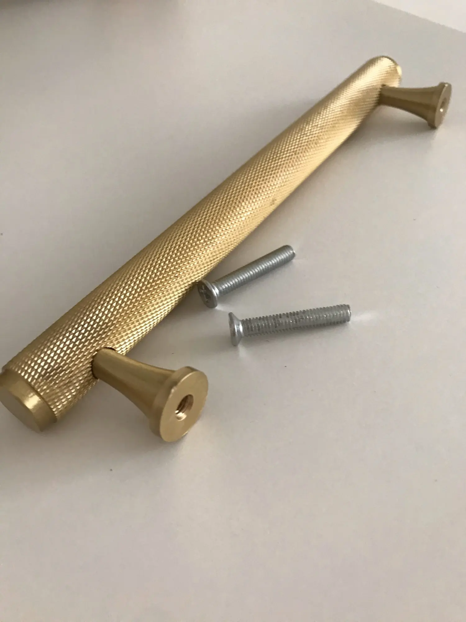 Ручки очень красивые, всё соответствует описанию. Единственный момент: у шурупов в комплекте довольно маленькие шляпки, поэтому пришлось отдельно искать накладки, чтобы шурупы не проваливались насквозь (видно на одном из фото). Ручки прикрутила к комоду из Икеи, идеально подошли по ширине.