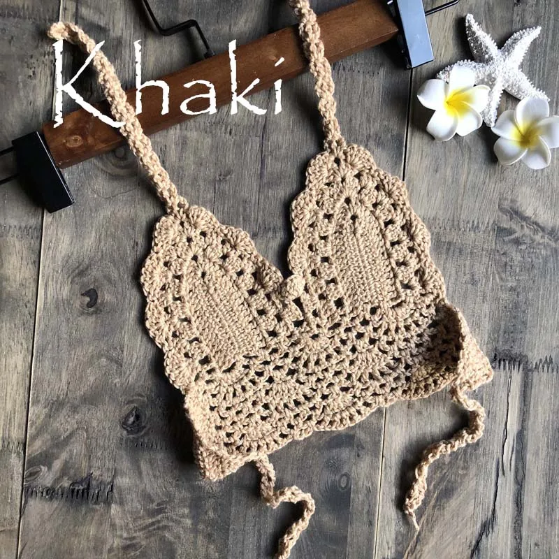 2019 модный детский вязаный крючком бикини топ сексуальный вырез лямка на шее v-образный вырез кружевные топы для девочек Детский бикини хлопок бюстгальтер Бесплатная доставка