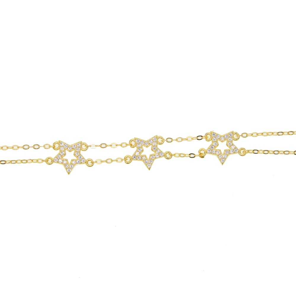 Очаровательный браслет из трех частей с фианитами и звездами, 925 пробы Серебряный, изящный модный браслет со звездами, Милые Браслеты
