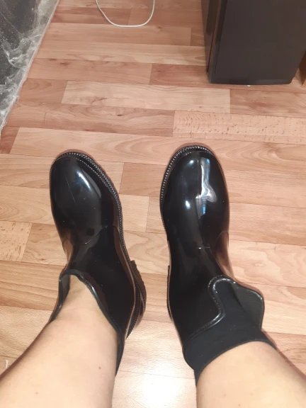 ботики резиновые хорошо смотрятся на ноге,цвет черный,размер совпадает с размерной сеткой,на фото сапоги как бы коричнего цвета