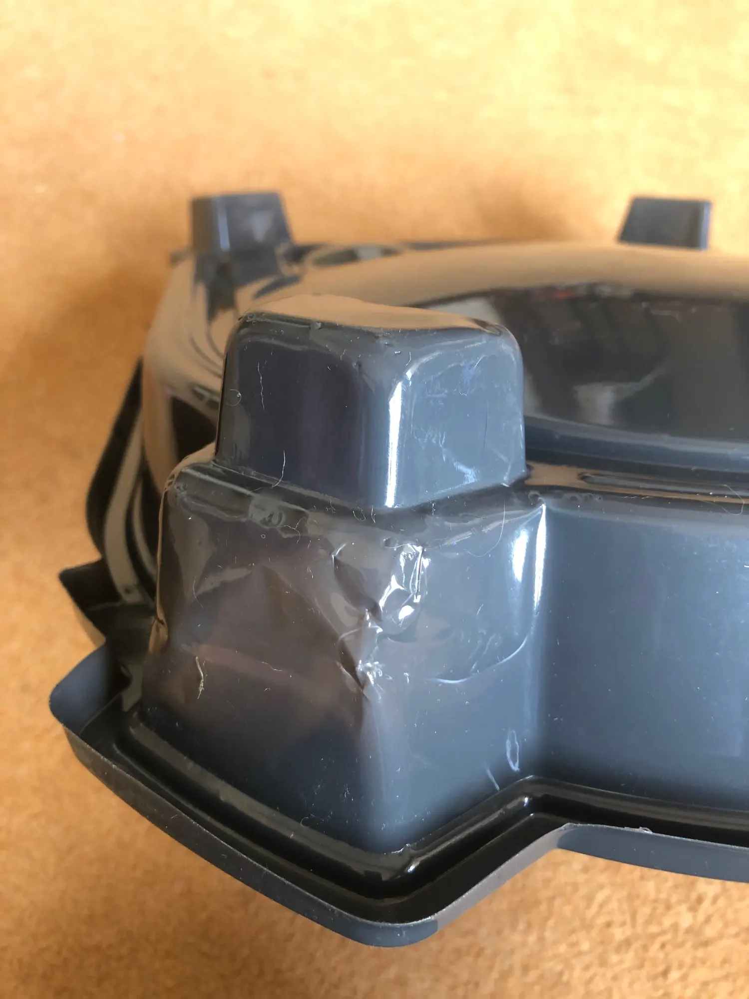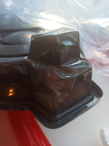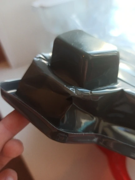 Очень тонкий пластик, поэтому во время поездки на уровне двух ножек он обязательно ударился. Поскольку он не проколется, мне удалось выпрямить пластик, даже если он оставляет следов, он будет предложен как таковой на Рождество. Пироги выглядят очень красиво и не повреждены