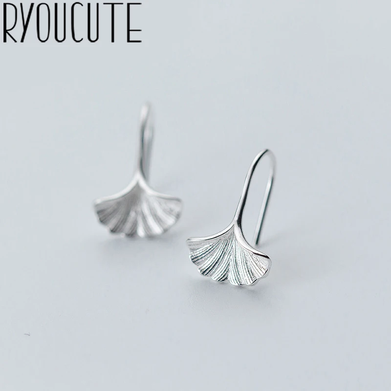 Женские серьги в виде листьев гинкго билоба RYOUCUTE, эффектные серьги из настоящего серебра 100% пробы