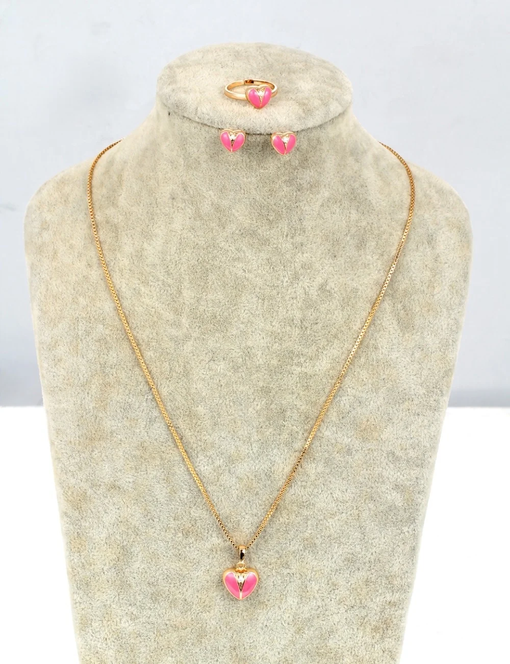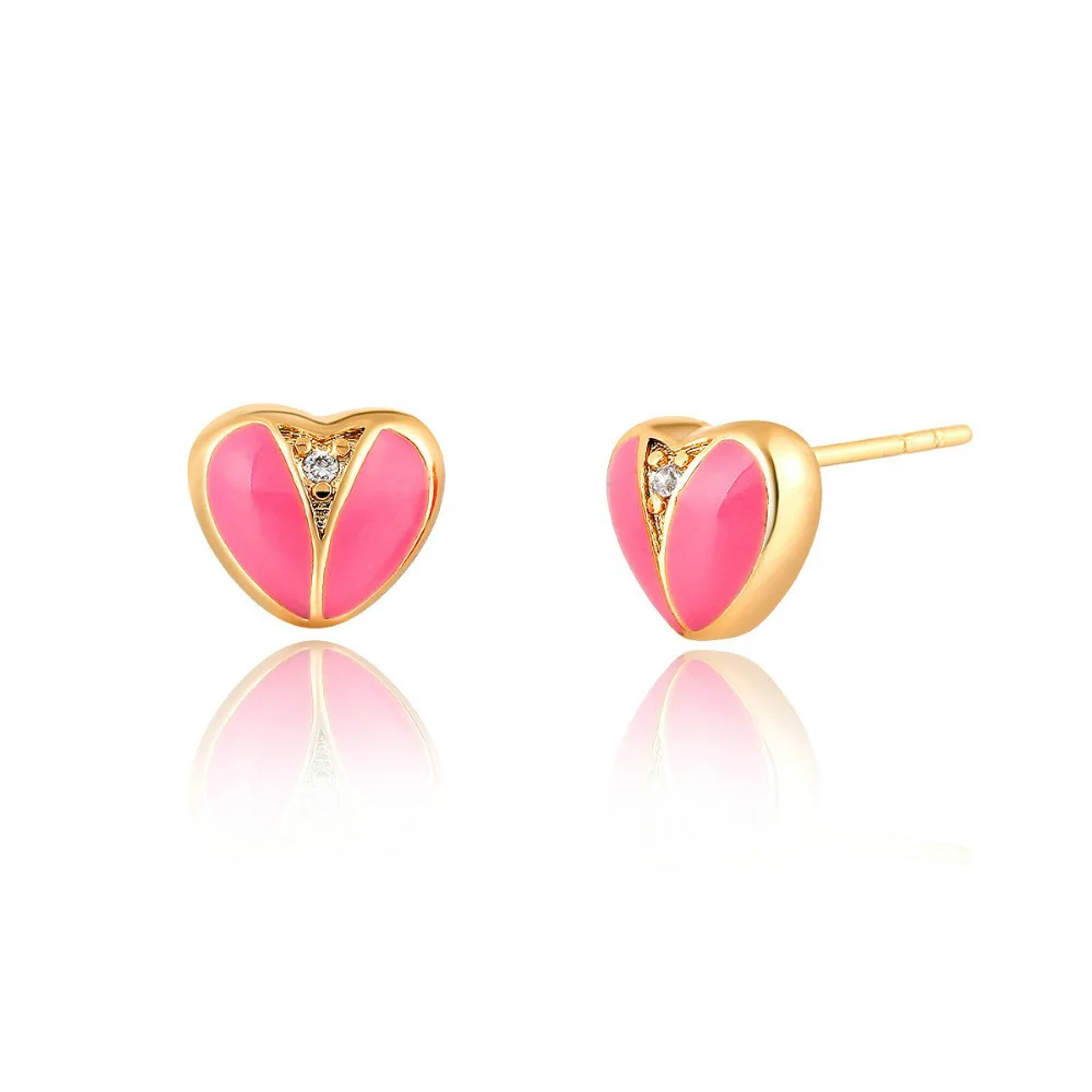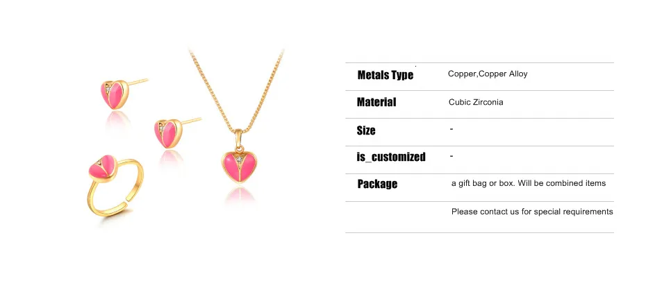 Милые розовые персиковые серьги-гвоздики в форме сердца с кубическим цирконием кольцо с подвеской ожерелье золотистого цвета маленькие Ювелирные наборы для детей девочек малышей