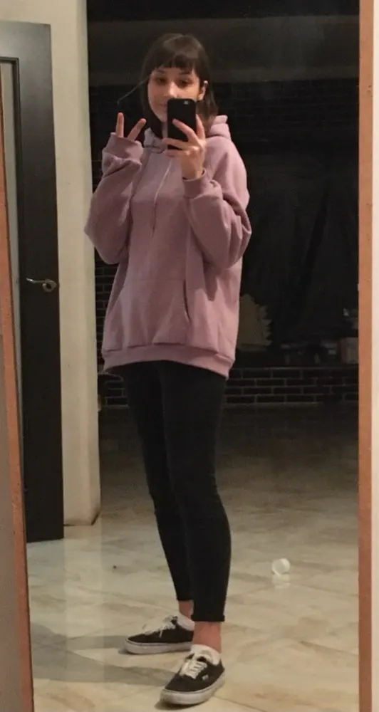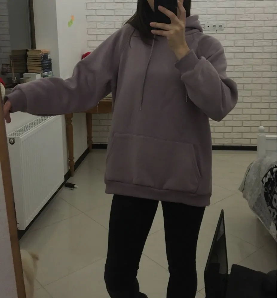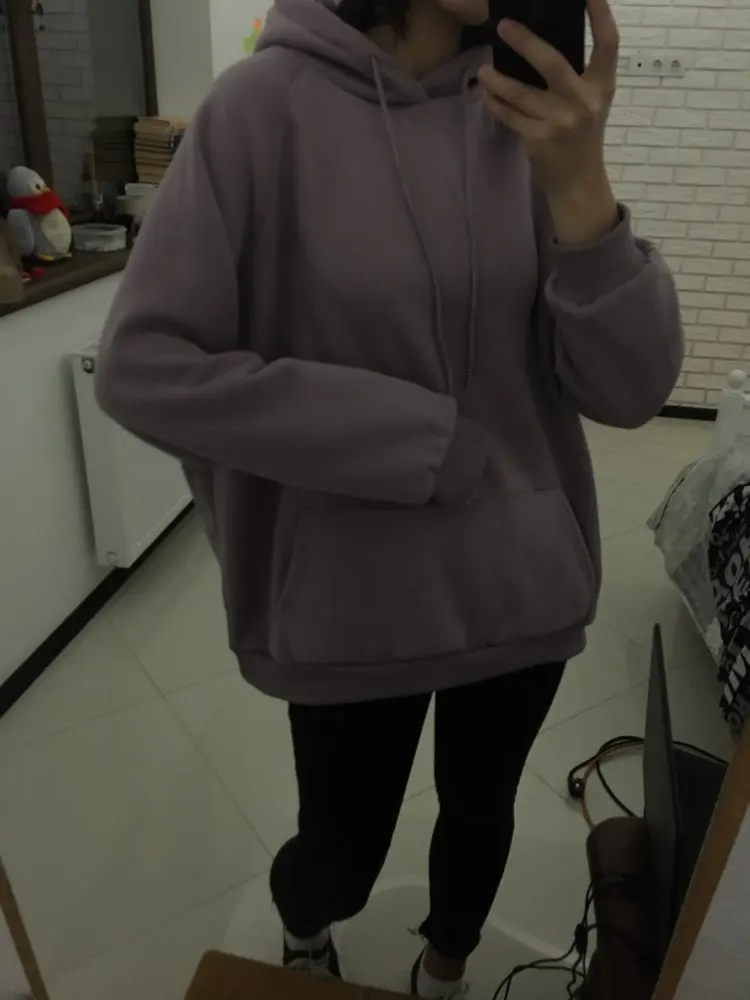 Толстовка прекрасная. Беру здесь уже второй раз и оба раза все хорошо, разве что на этом худаке надо нитки на плече немного срезать (больше нигде ничего не торчит, в прошлый раз так вообще не было ниток). Качество хорошее, немного полиняет флис после нескольких раз носки, но это не страшно, главное проглаживать хорошо и надевать под толстовку первое время какую-нибудь майку, что бы лифак катышками не замарать. Цвет, фасон и объём такие же, как на фото. Сама по себе толстовка достаточно тёплая, не как тряпочка, как это иногда бывает, достаточно плотная. С продавцом пришлось пообщаться. Изначально я заказывала фиолетового цвета худи, но что-то мне стрельнуло в голову и я захотела чёрное. Продавец прочитал, выполнил мою просьбу о смене цвета, но затем я снова передумала и попросила второй раз сменить на фиолетовый. Просьба выполнена оба раза и я ужасно ему благодарна, что он меня не послал с такой непостоянностью. Надето на рост 165, вес 58,