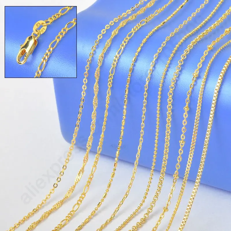 10 шт образца 18 "микс 10 видов твердого желтого золота заполнены Венеция Фигаро Роло Снаряженная ожерелье цепи-штампованные 1,2-2 мм