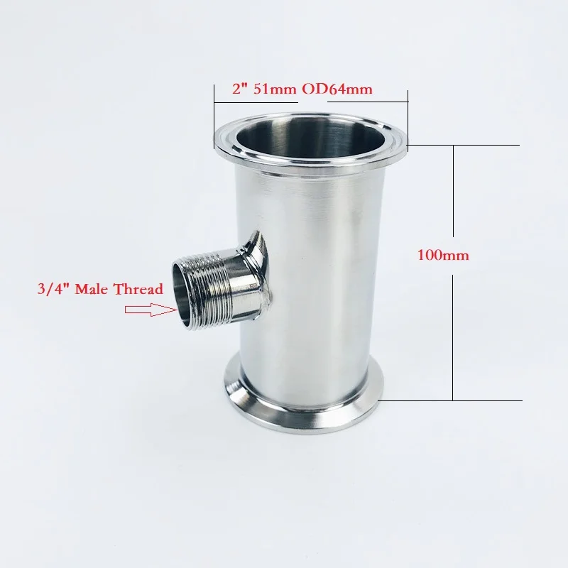 Бесплатная доставка 2 "(51 мм) OD64 санитарная трехклеверная катушка трубатруба со средней наружной резьбой 34", длина 4 "(100 мм),SS304