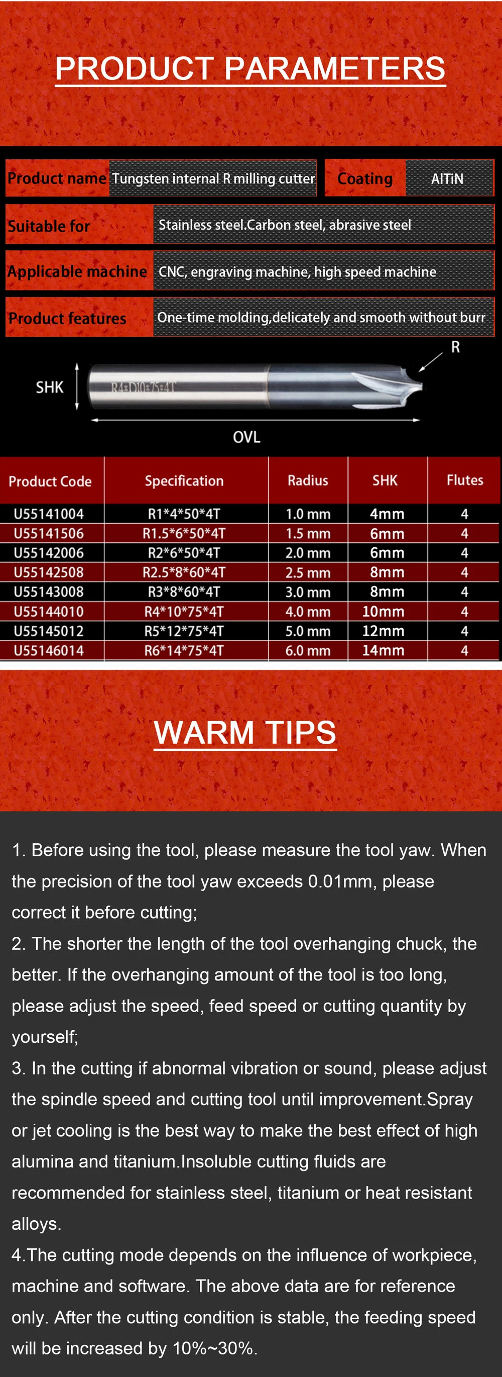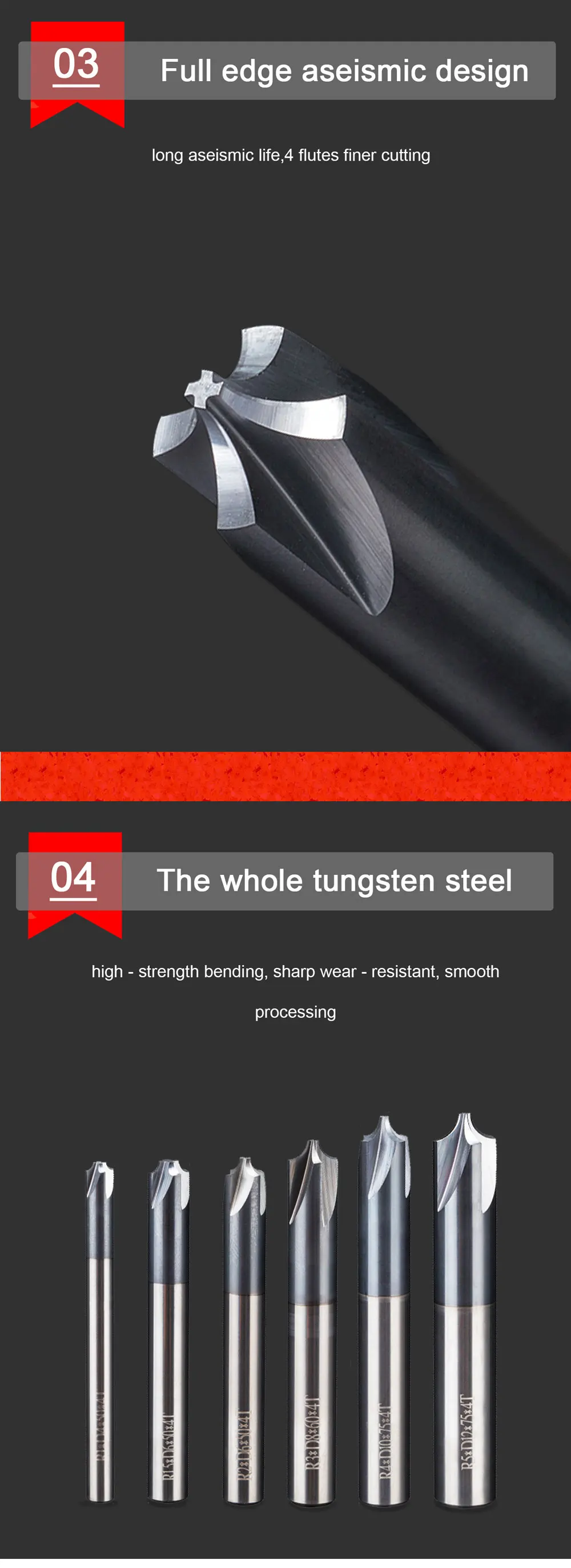 UCHEER 1 шт.компл., твердосплавная внутренняя R-угловая концевая фреза, 24 канавки, фреза с ЧПУ, фреза для снятия фаски