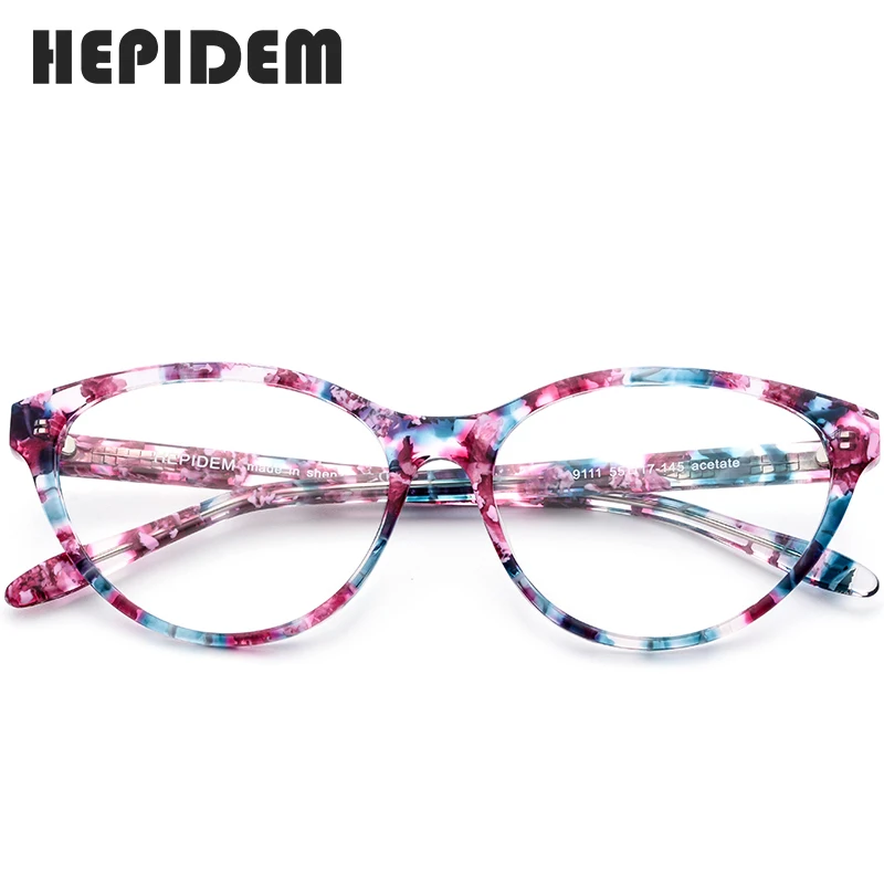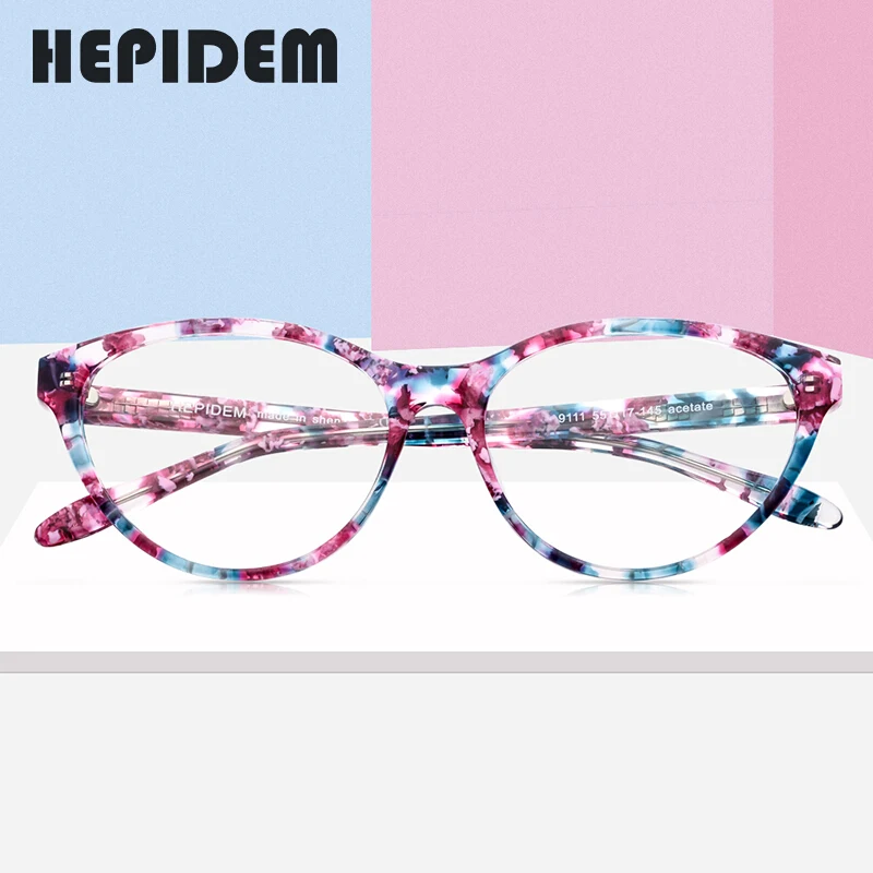 HEPIDEM Оправа для очков из ацетата для женщин, брендовые дизайнерские очки кошачий глаз по рецепту, женские очки кошачий глаз, 9111