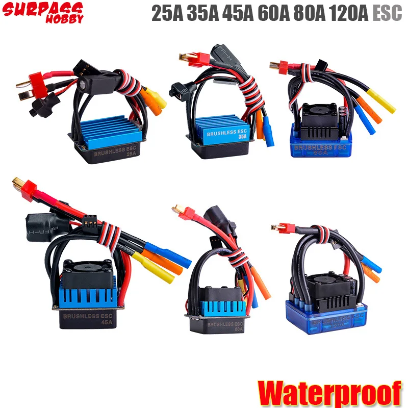 Водонепроницаемый бесщеточный контроллер скорости ESC 25 А 35 а 45 а 60 А 80 А 120а для 18 110 112 радиоуправляемых машинок, детали для лодок
