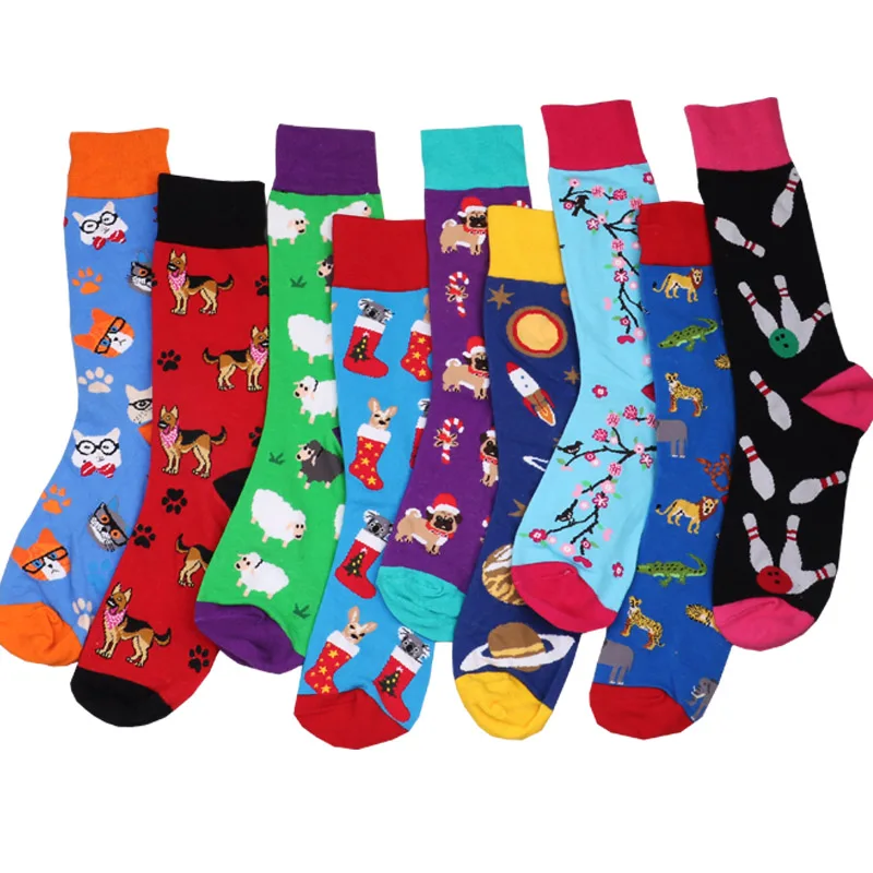 Носки женскиемужские, хлопок, мягкие, с рисунком красивых пингвинов, собак
