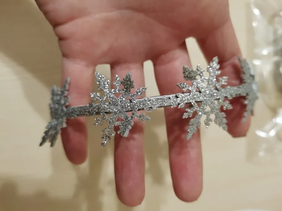 Действительно очень красиво! Дочке 3 годика,по размеру отлично- как раз, ребёнок не хочет снимать. За счёт того, что снежинки не большие, смотрится очень нежно