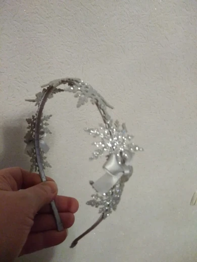 Очень-очень красиво и очень изысканно! Волшебный ободок реально, мерцание серебряное сказочное! Жаль, фотки не передают всю эту красоту, но все равно их прикладываю). Дочка в восторге! Продавец положил подарочек- милая резиночка для волос в форме бантика! Спасибо продавцу!