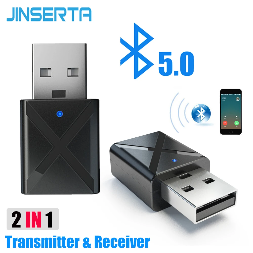 Автомобильный Bluetooth 5,0 адаптер JINSERTA 2 в 1, беспроводной передатчик адаптеры приемника, стерео музыка, AUX аудио ключ для ТВ, ПК динамиков
