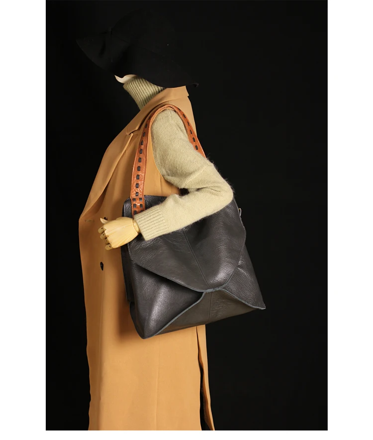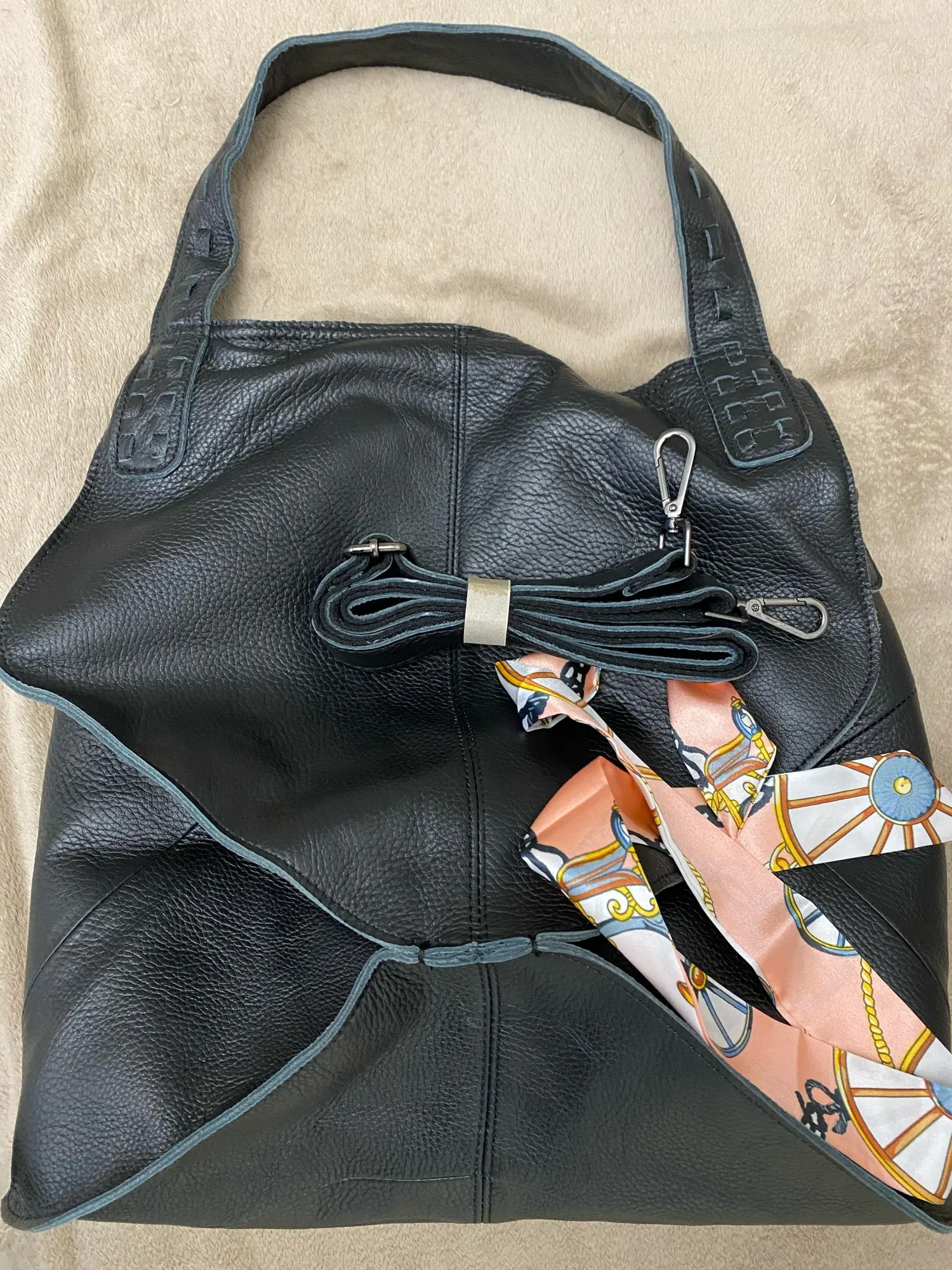 Сумка очень понравилась. Изготовлена из толстой и мягкой кожи. Швы все ровные, нитки не торчат, качество изготовления на высоком уровне. Очень вместительная, на плече сидит удобно. не падает. Кто любит стиль оверсайз, такая сумка будет в тему. Доставка в Москву прошла за две недели. Продавцу спасибо.