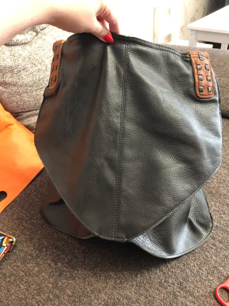 Очень хорошая кожаная сумка. Я очень рекомендую этого продавца. Товар прибыл быстро и соответствует онлайн описанию. Очень красивый темно-серый цвет.