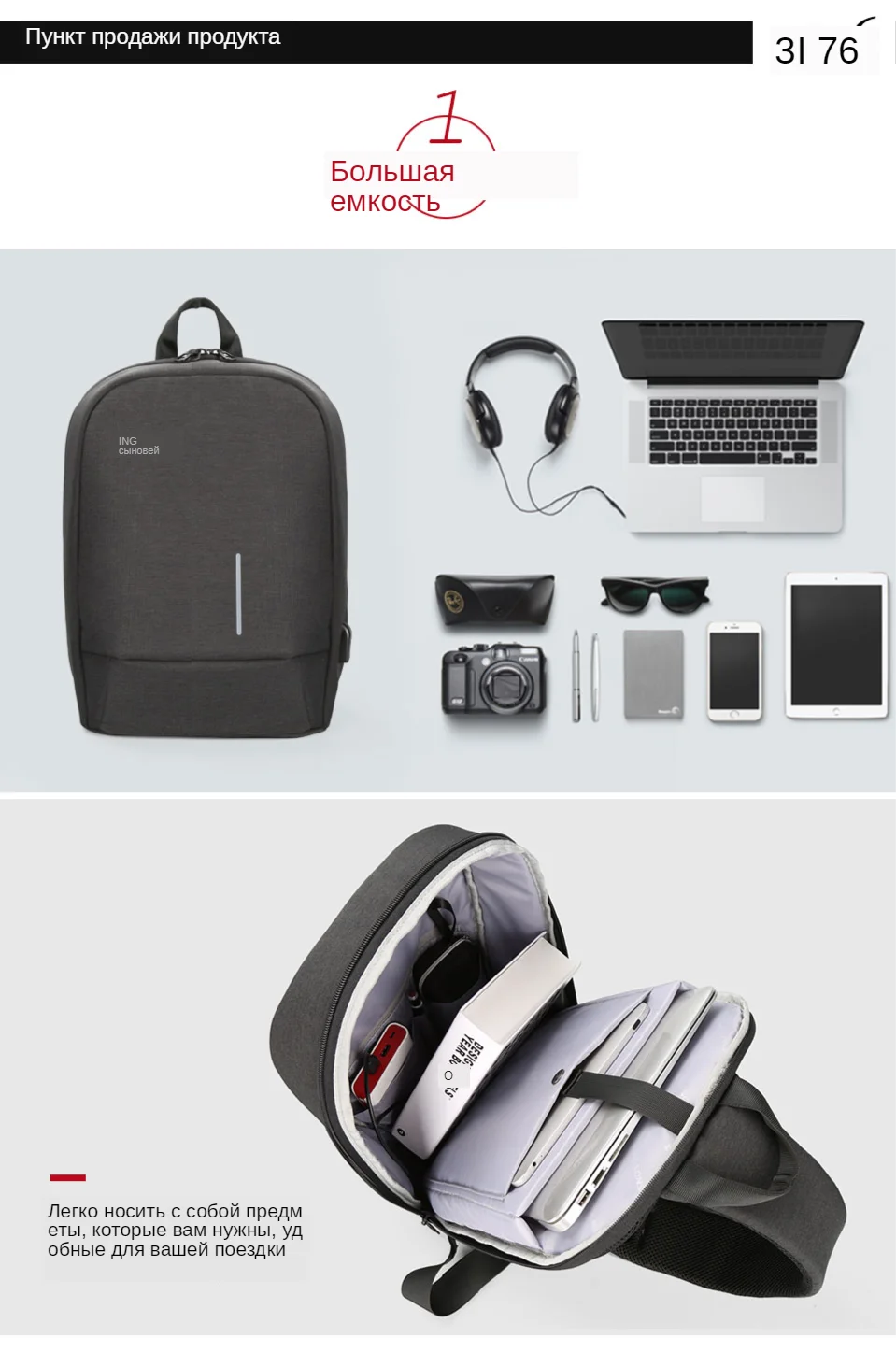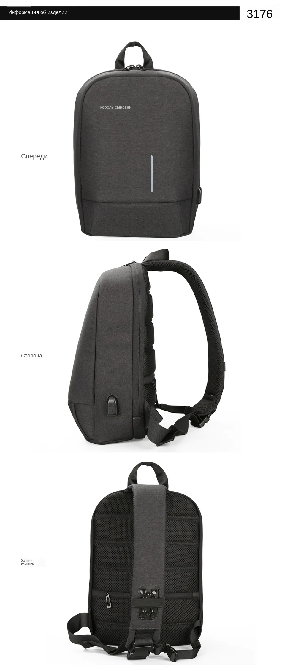 Примечание: внутри рюкзака отсутствует Мобильная мощность.