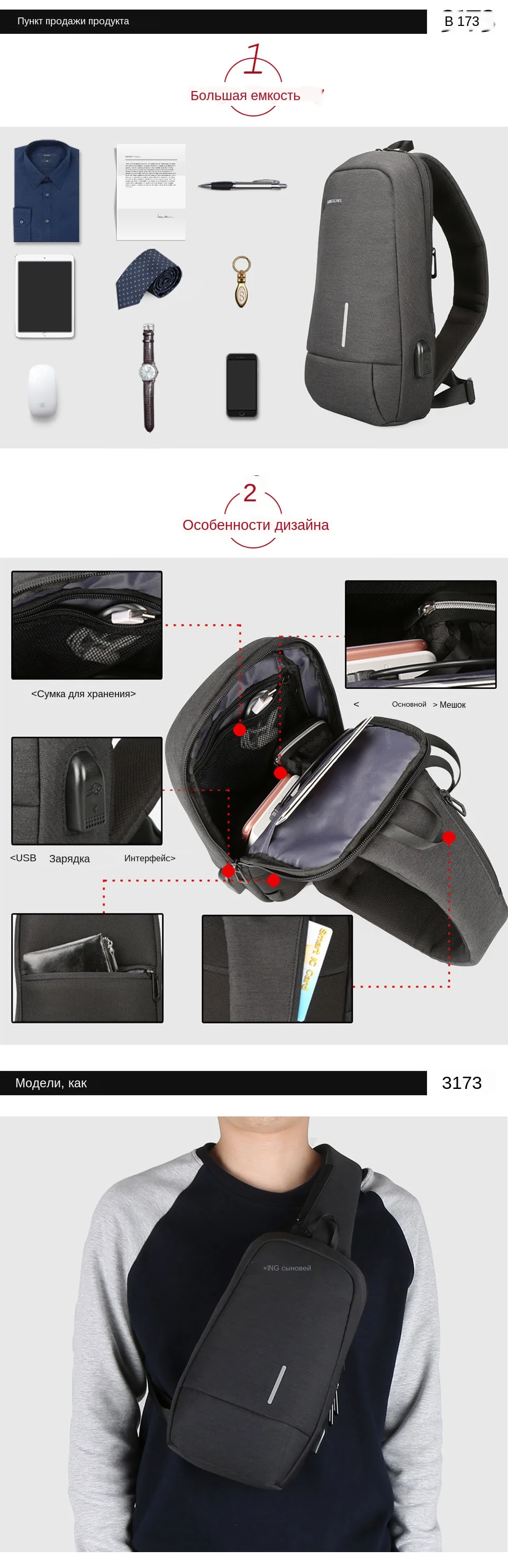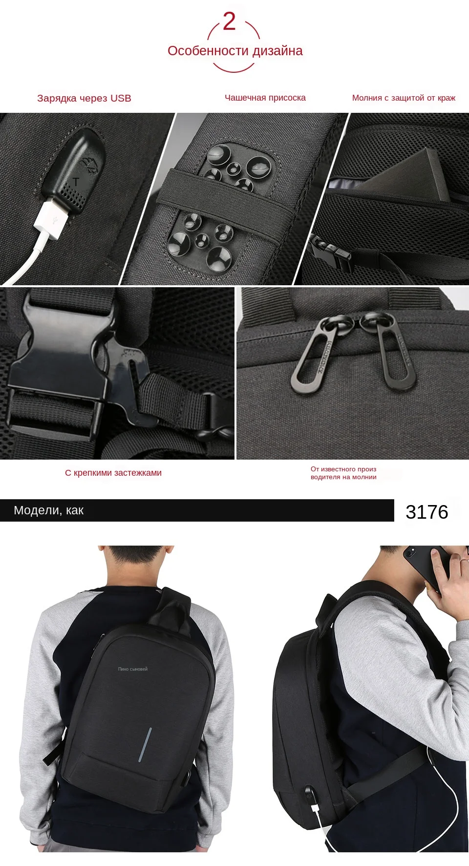 Рюкзак Kingsons с защитой от кражи, сумка на присоске для телефона ...