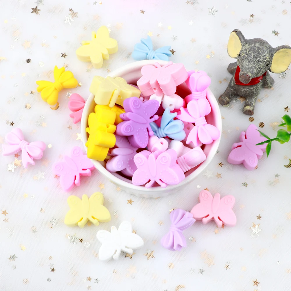 TYRY.HU 10 шт.лот силиконовые бусины в виде милой бабочки без бисфенола А для детского питания