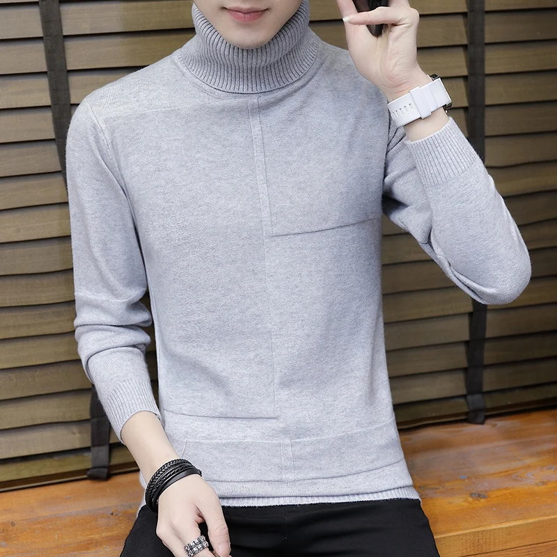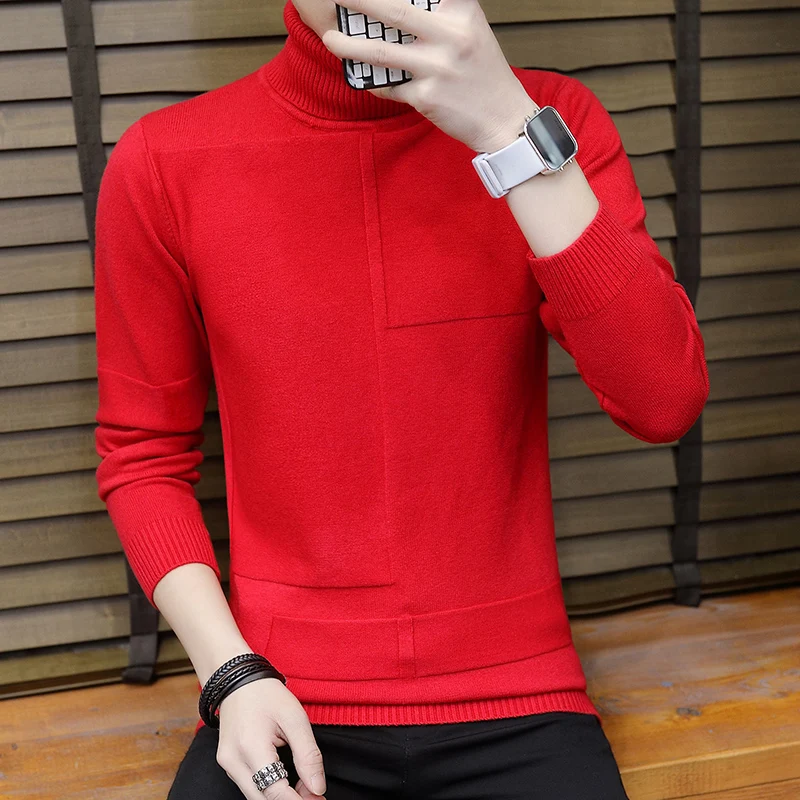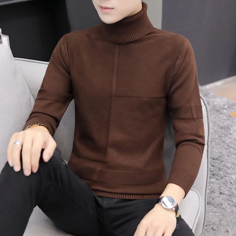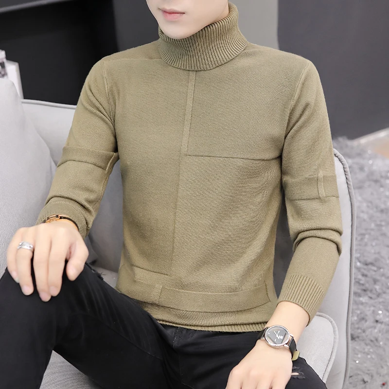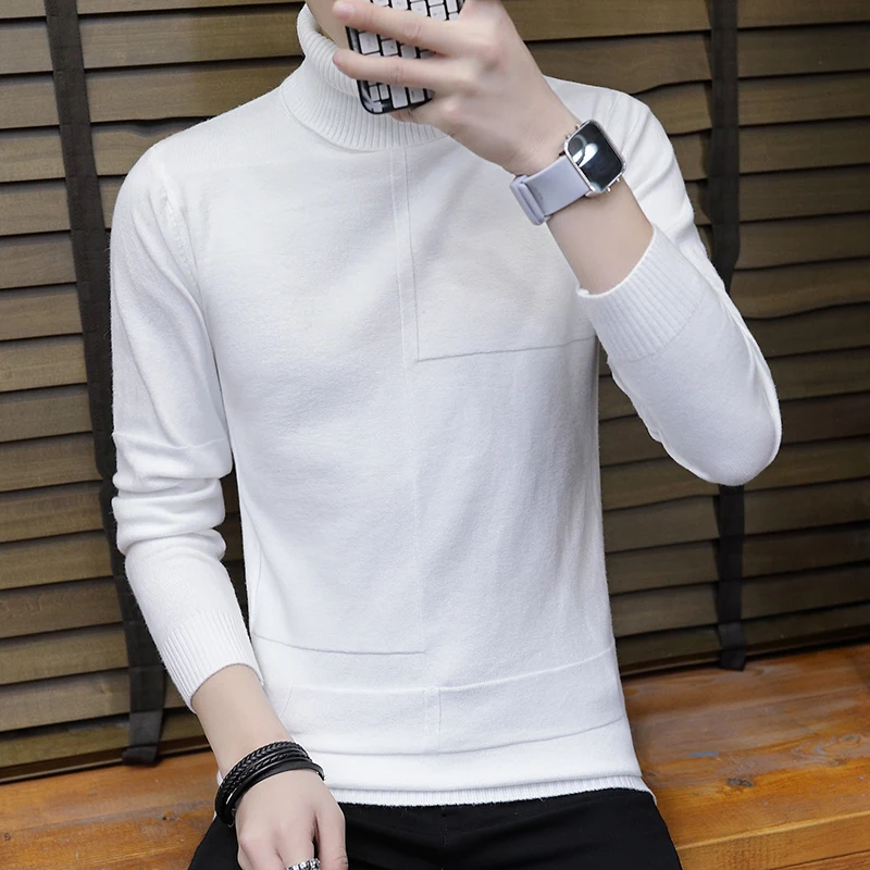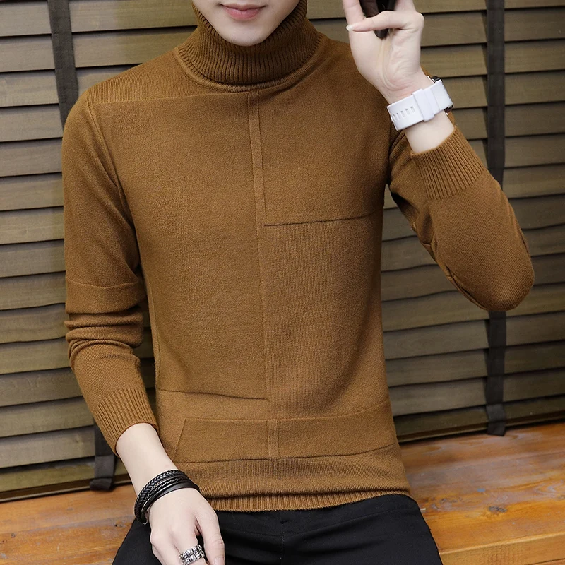 Зимняя теплая водолазка, Мужская водолазка, Брендовые мужские свитера, облегающий пуловер, вязаный мужской свитер с двойным воротом, Новинка