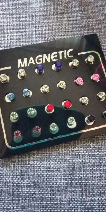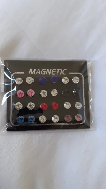 Прибыл очень быстро (10 дней), украшения неплохие. Немного меньше, чем я думал (я заказал в 4 мм), поэтому трудно обрезать, потому что магниты маленькие и легко теряются. Но в остальном как описано. 6 белых пар и 6 цветных пар. В целом доволен.