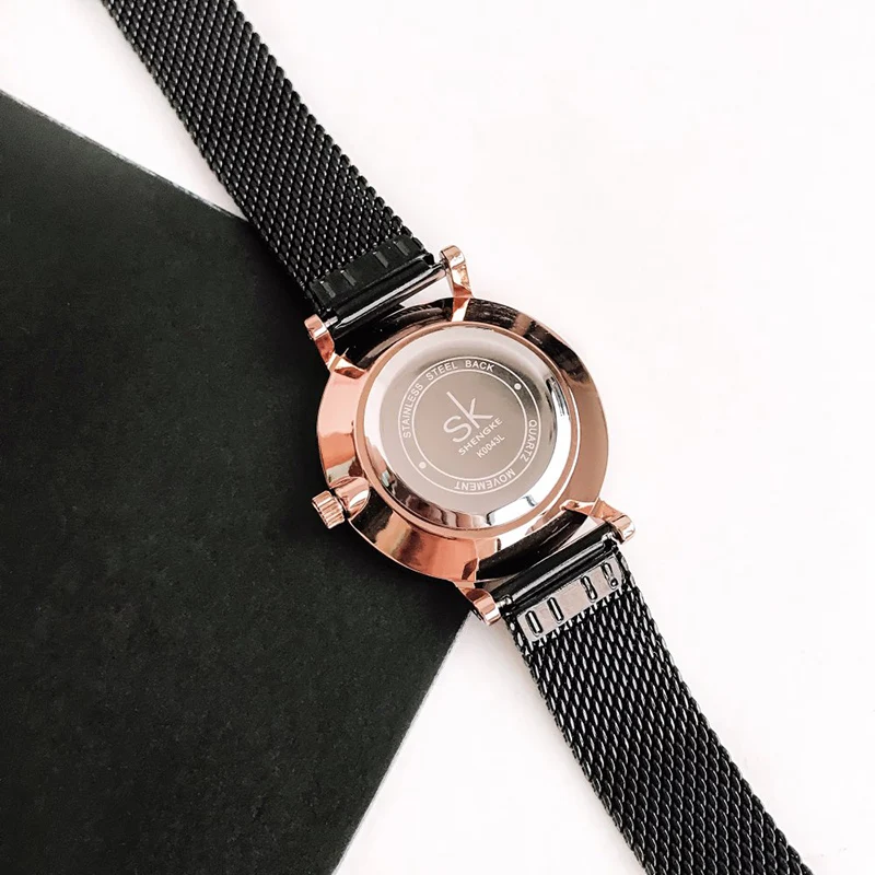 Часы Shengke женские из нержавеющей стали, кварцевые, черные, в подарок на день рождения, # K0043, 2019