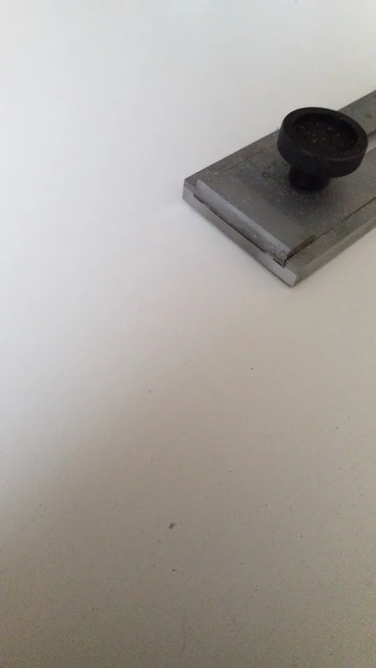 Отличная линейка. Очень удобно выставлять шину для погружной пилы. Лицевая сторона матовая. Шайба под барашком металлическая, оставляет следы, заменил ее на шайбу от кровельного самореза. И прижимает хорошо, и следов не оставляет.