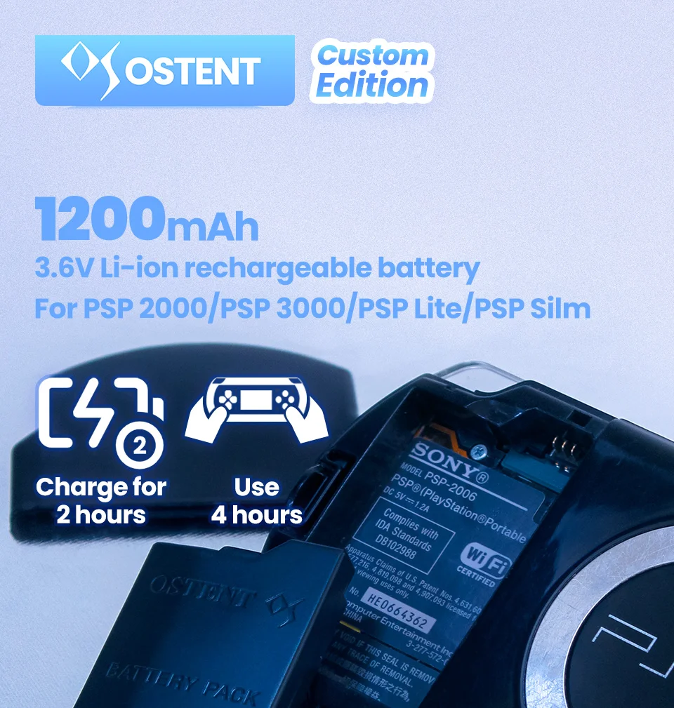 Литийионный аккумулятор Ostent PSP-S110, 1200 мАч, 3,6 В, для Sony PSP 20003000