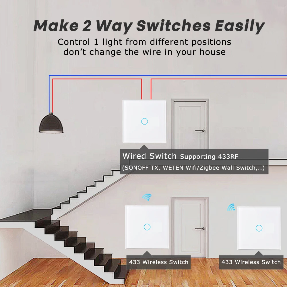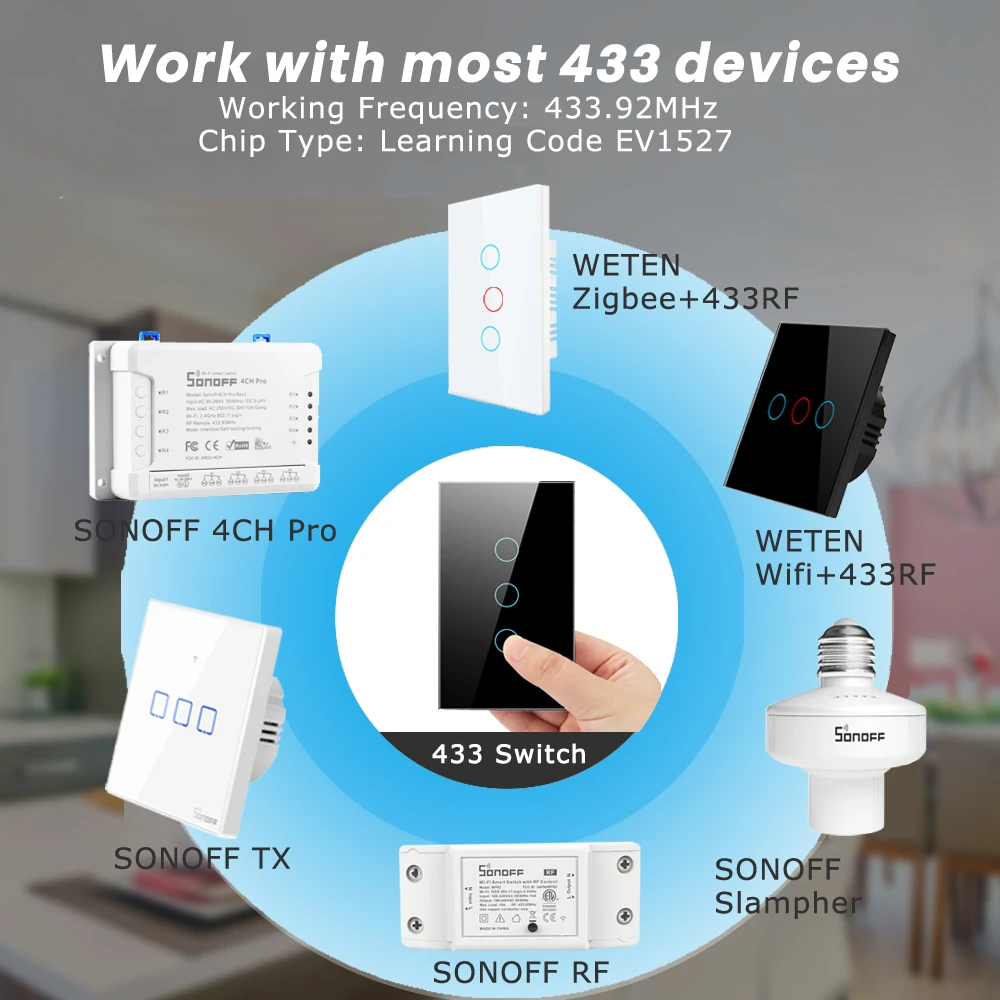Настенный сенсорный выключатель с дистанционным управлением, 433 МГц, для Sonoff TX T1 T2 T3 EU UK US Sonoff 4CH Pro R2 R3 Slampher RF Wi-Fi, выключатель света