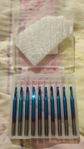 Очень очень долгая доставка без информации о месте. Более трёх месяцев шли фрезы. И пришли когда они уже не нужны. Али спор по возврату не поддержало, хотя каждый раз увеличивая срок, писали что если не придёт через неделю вернём деньги и так раз 10..... По качеству в отличие от американских, на ощупь тупые. Грани вообще не острые, а "полировка" шершавая на ощупь. Вообщем могли вообще не привозить. А хвостовики просто отколоты у всех, надеюсь на фото видно. От общего прутка просто отламывали кусочки подкрашивая синим.