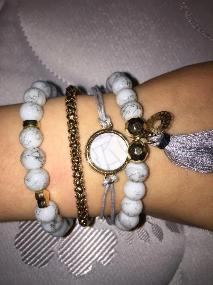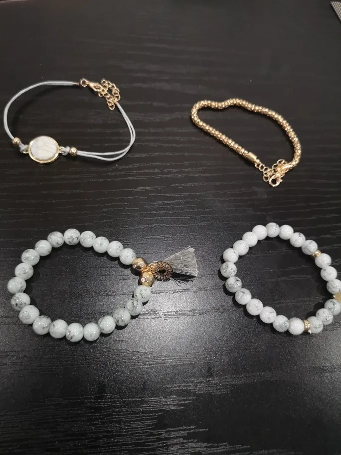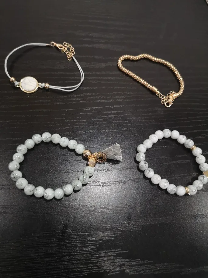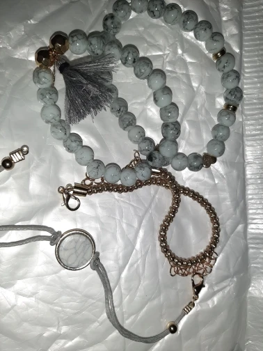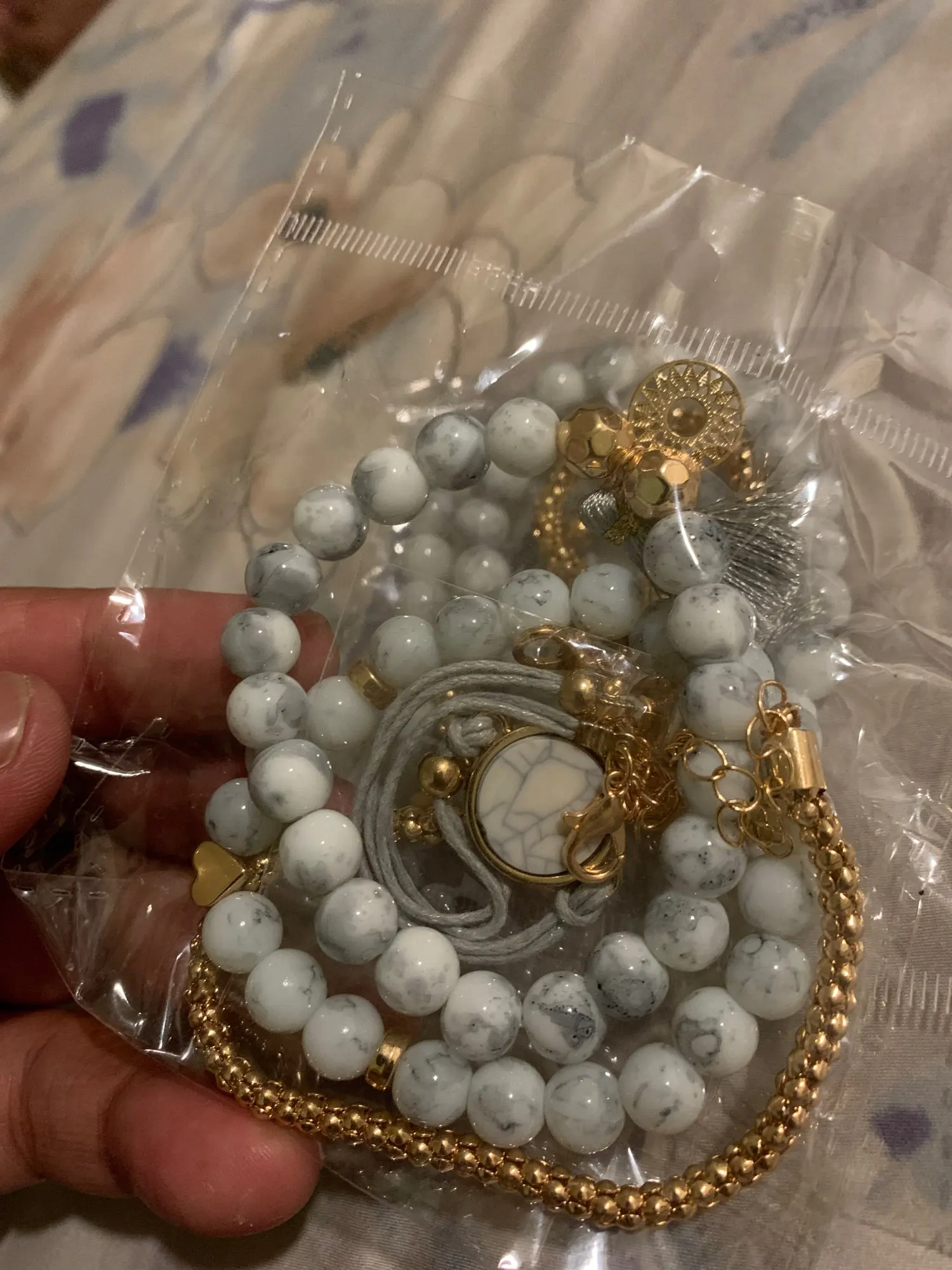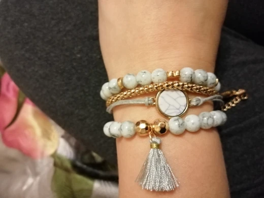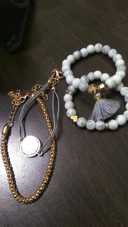 Пришло быстро, красивые браслеты. На картинке они серо-белые, на самом деле немного отдают серо-голубым цветом.