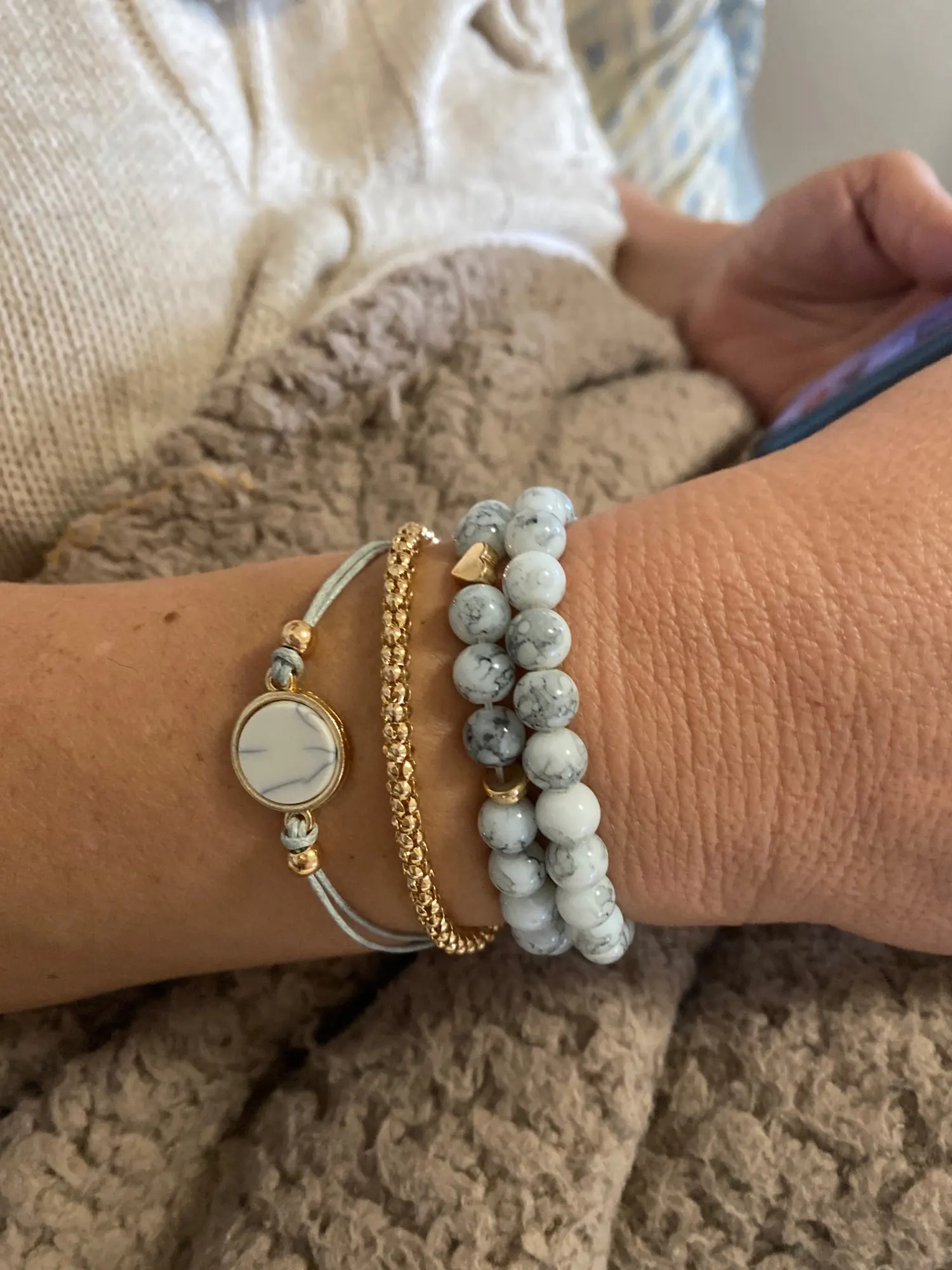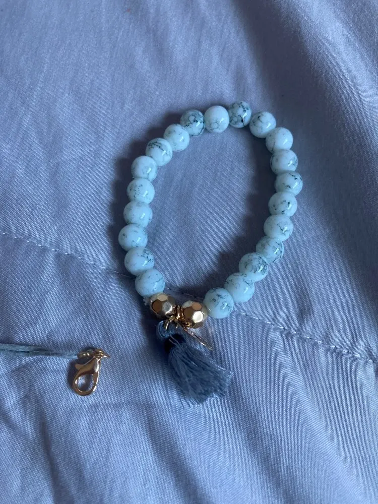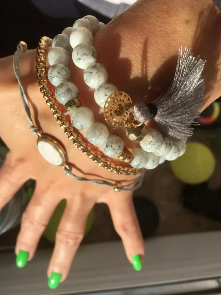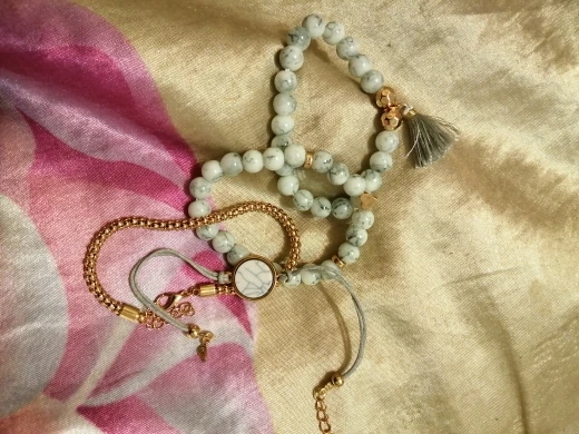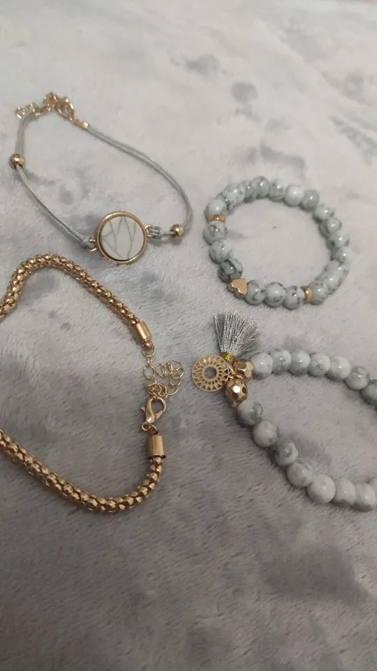 Пришло быстро, красивые браслеты. На картинке они серо-белые, на самом деле немного отдают серо-голубым цветом.